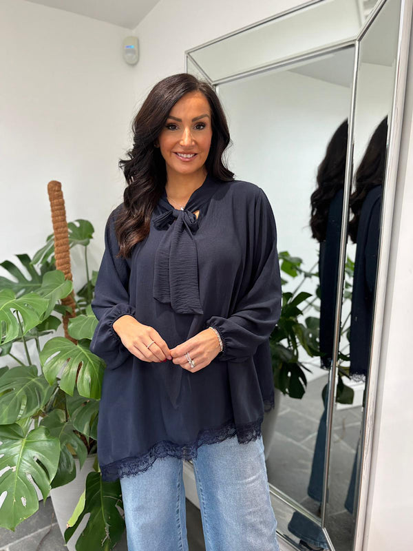 Navy Pussy Bow Blouse Ellis