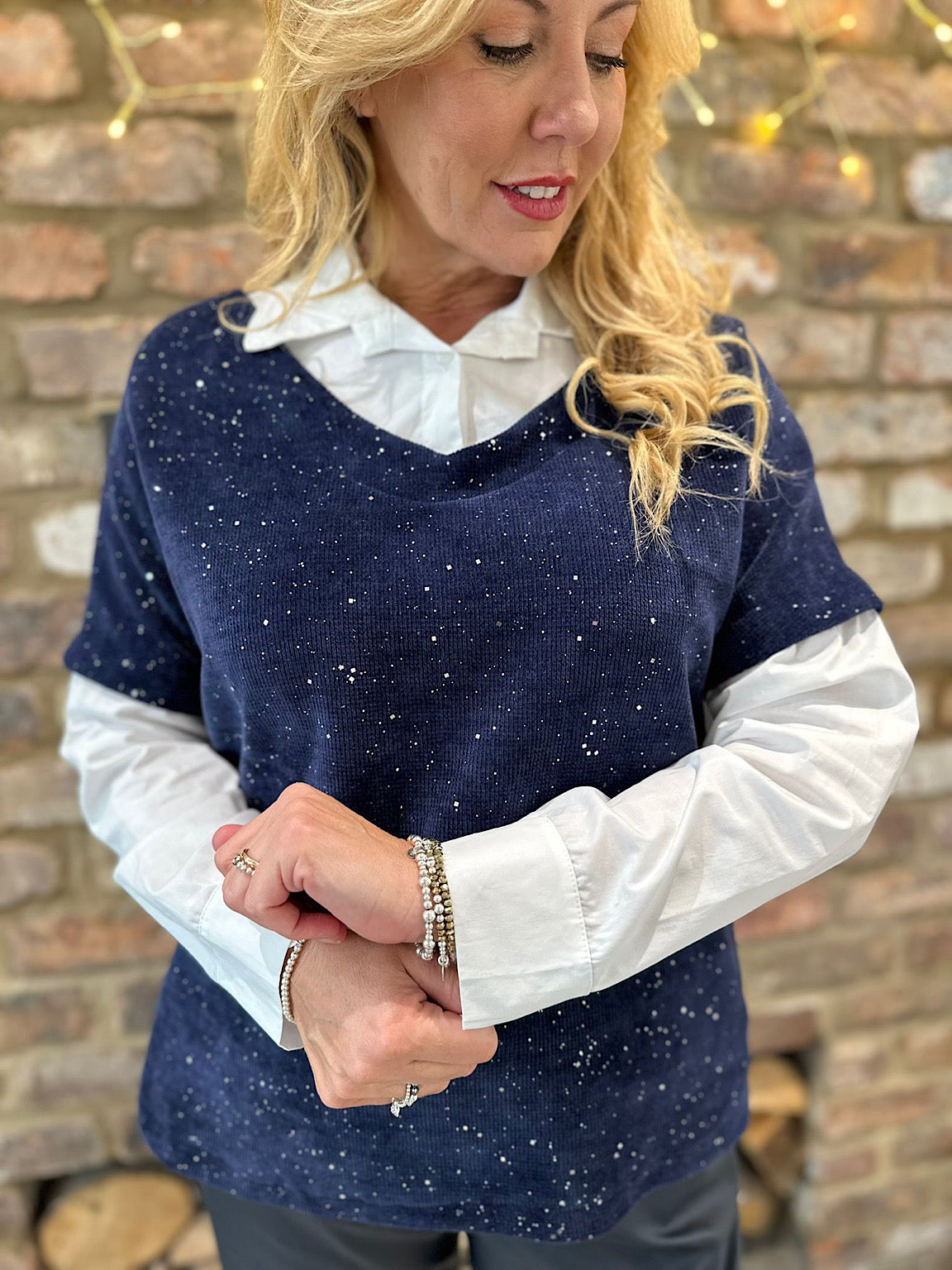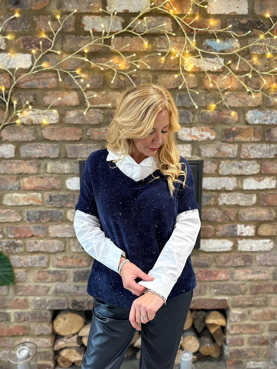 Shimmer Layered Top Ellis combines luxurious shimmer chenille with an integrated shirt collar and sleeves, creating a sophisticated layered look in one seamless piece. The warm, lustrous fabric catches the light beautifully, offering effortless elegance without the fuss of coordinating separates. Perfect for adding dimension and warmth to your wardrobe with understated glamour.