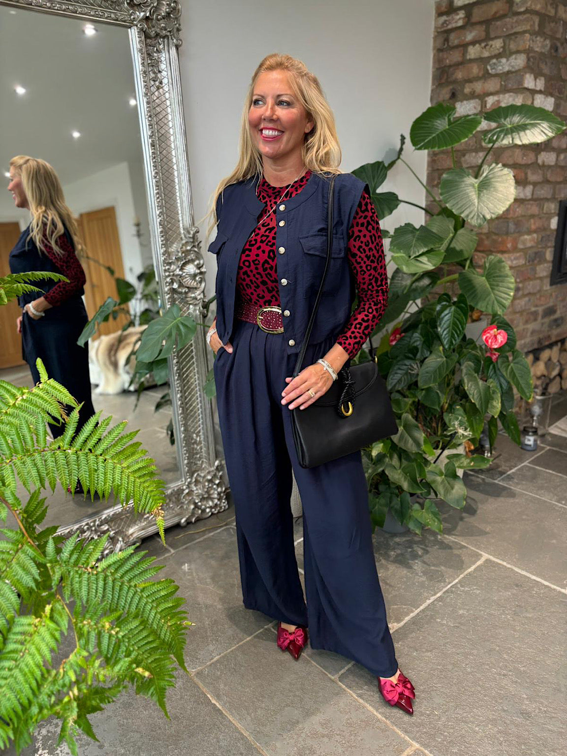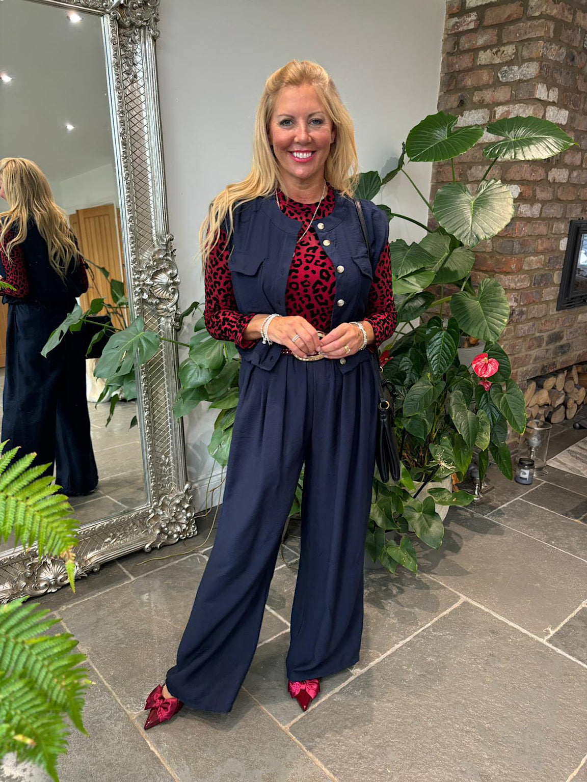 Navy Sleeveless Button Top and Trouser Co-Ord Piper