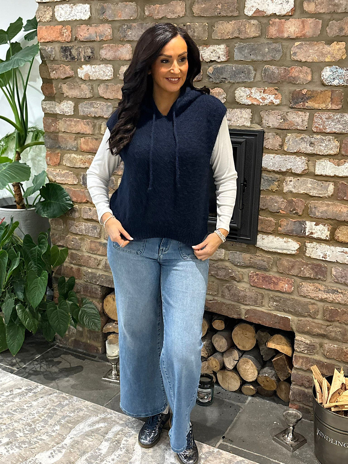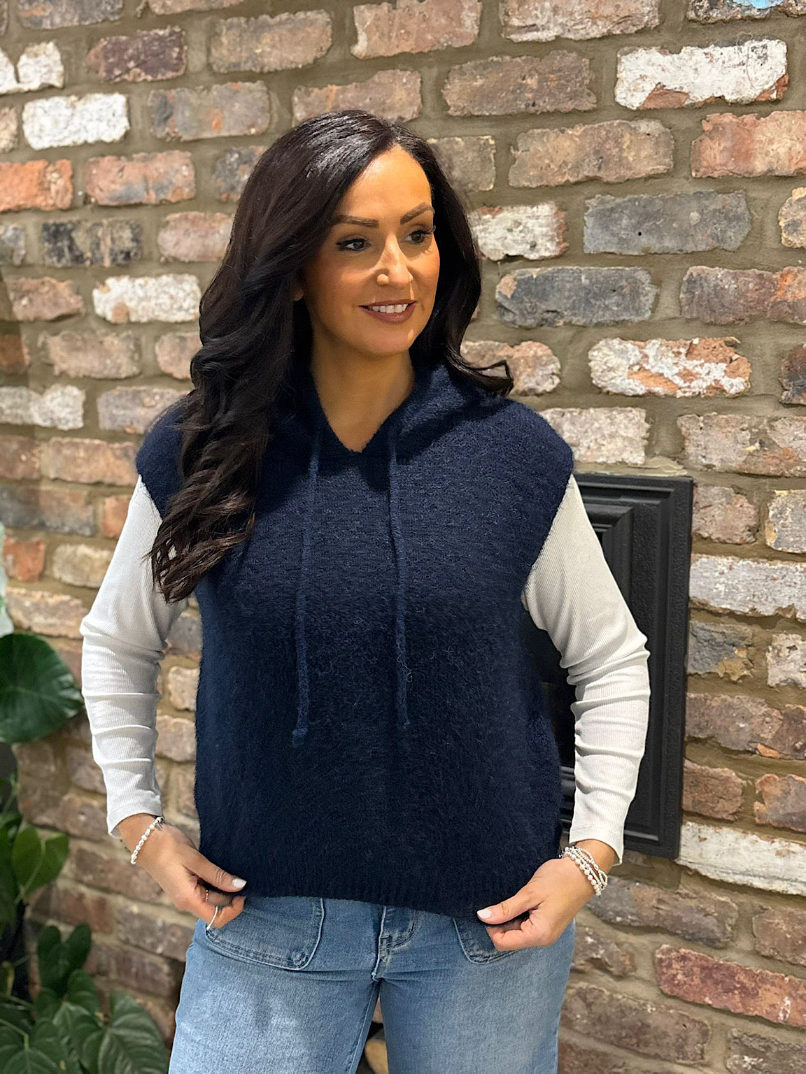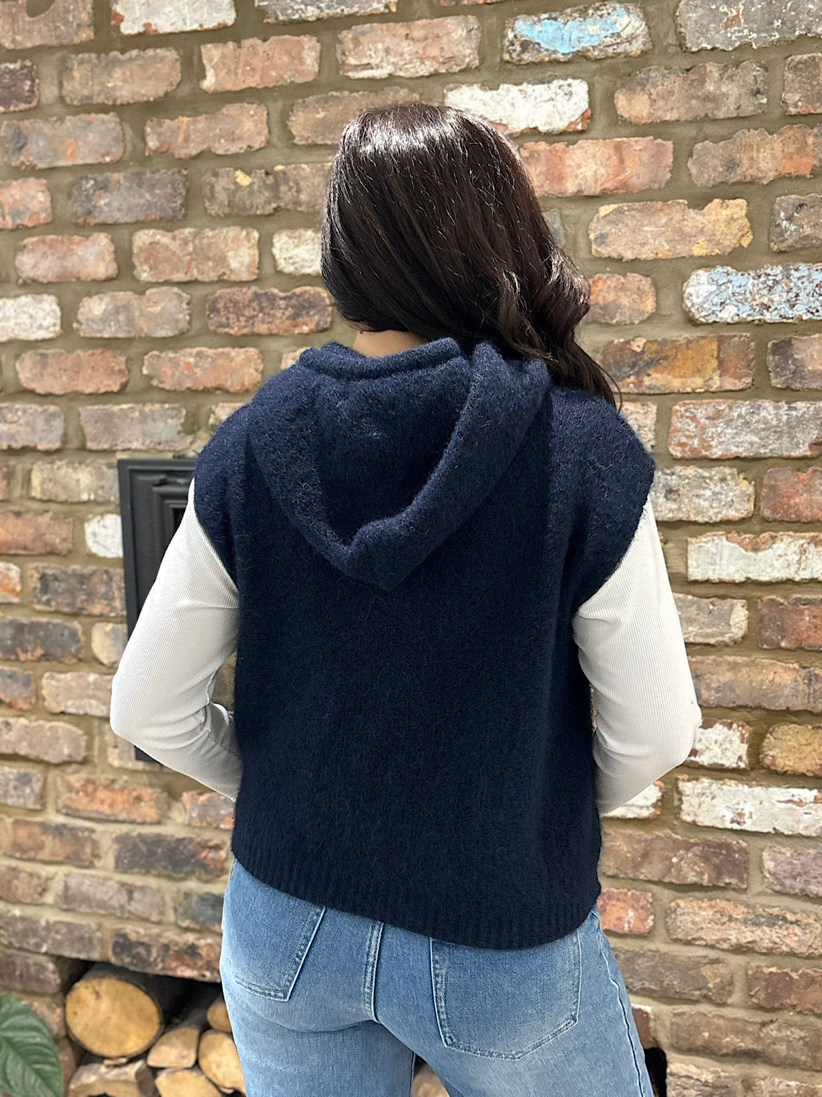 Navy Sleeveless Knitted Hoodie Sherida