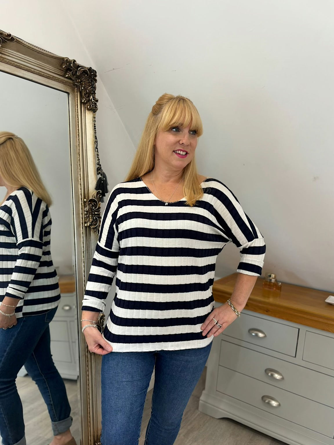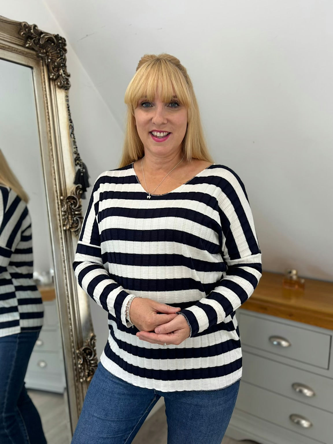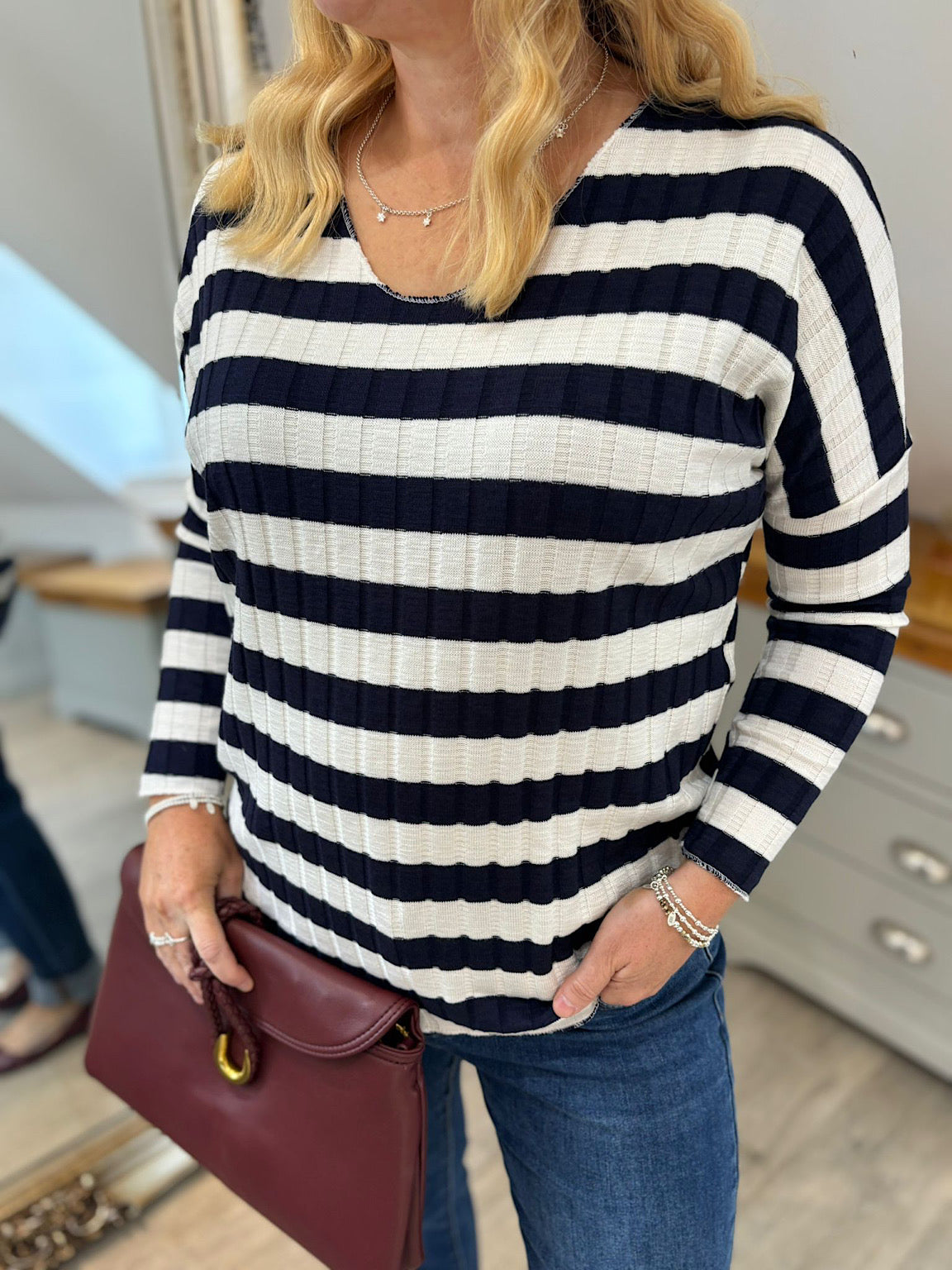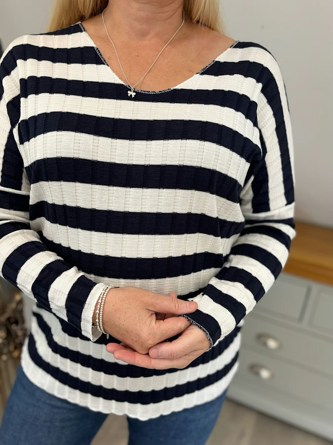 Navy Striped Ribbed Top Indie