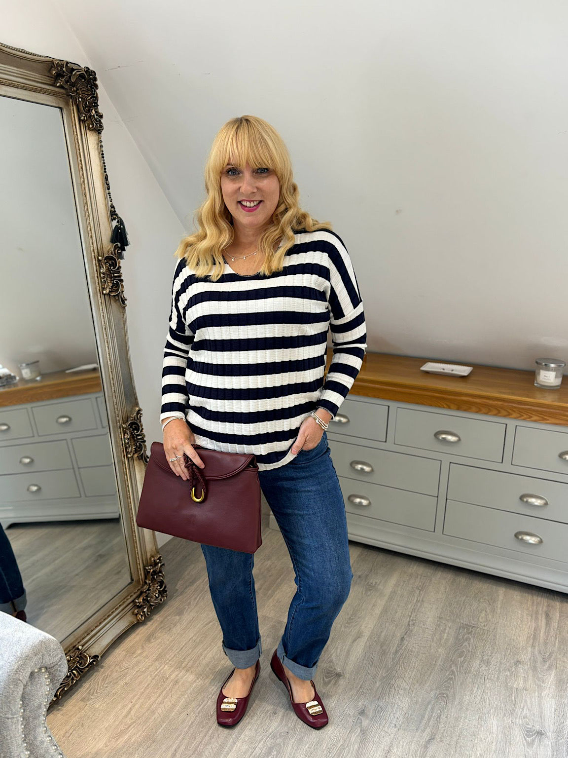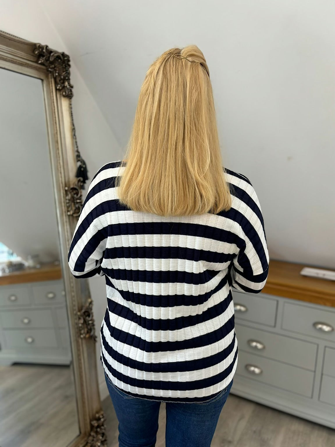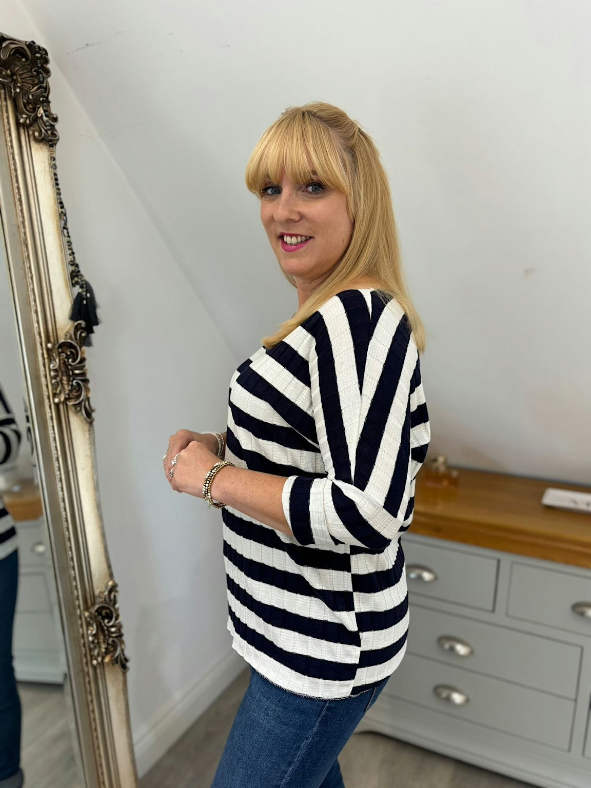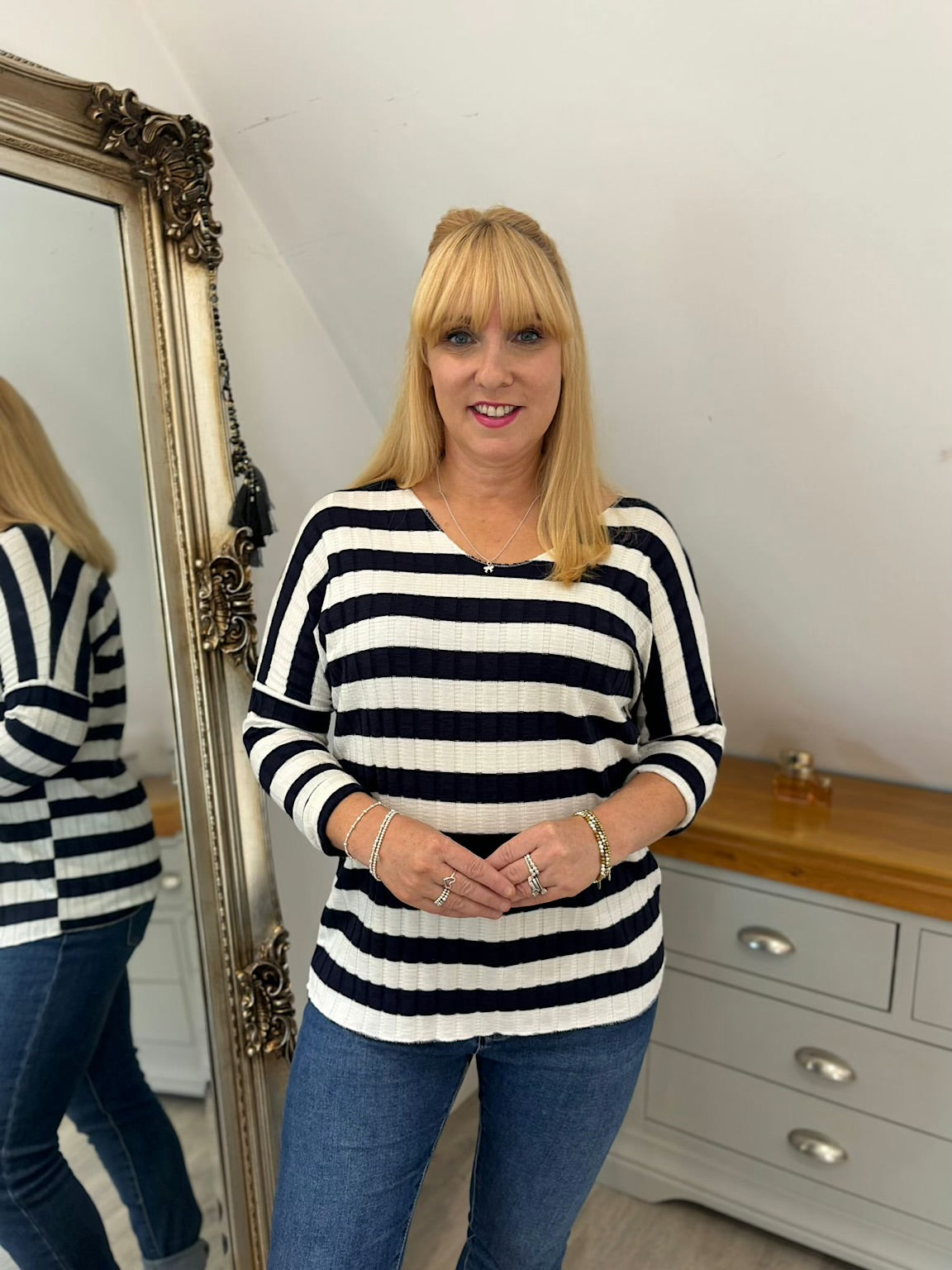 Navy Striped Ribbed Top Indie