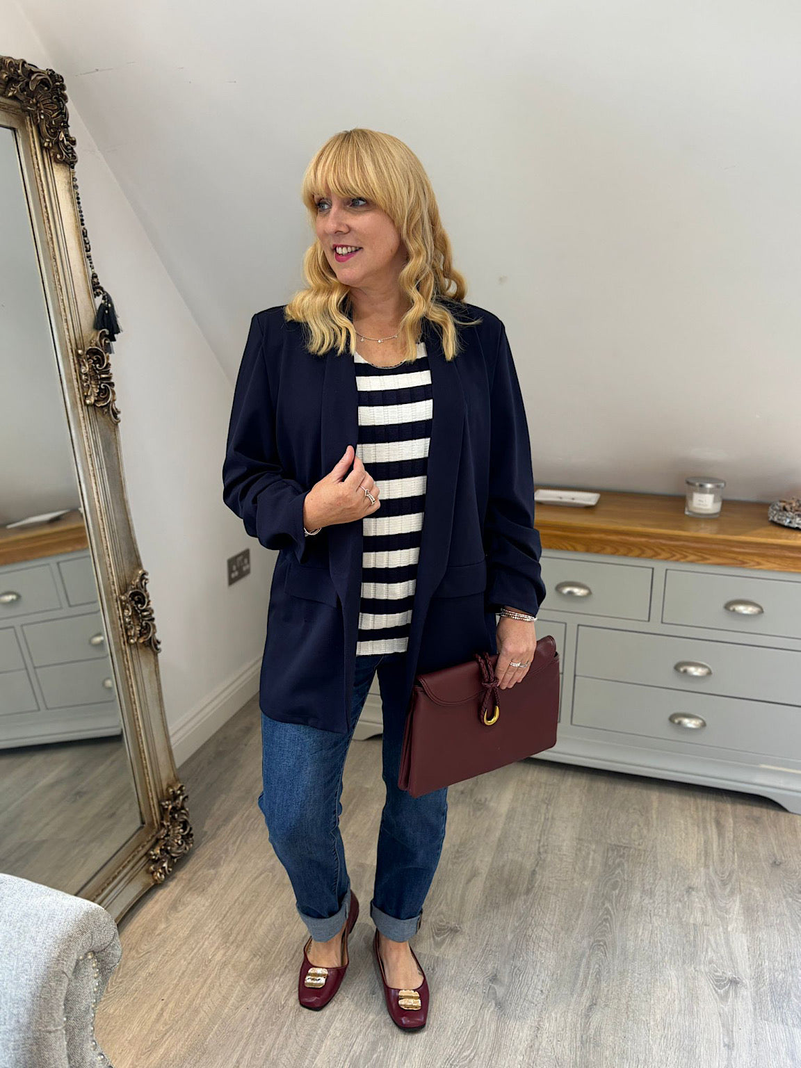 Styled with.....>Wine Braid Fasten Shoulder Bag/ Wine Hammered Gold Flats