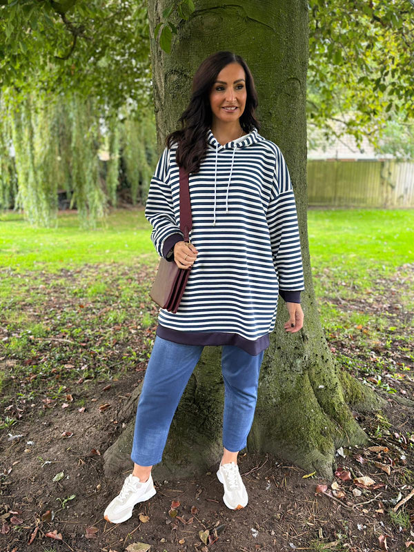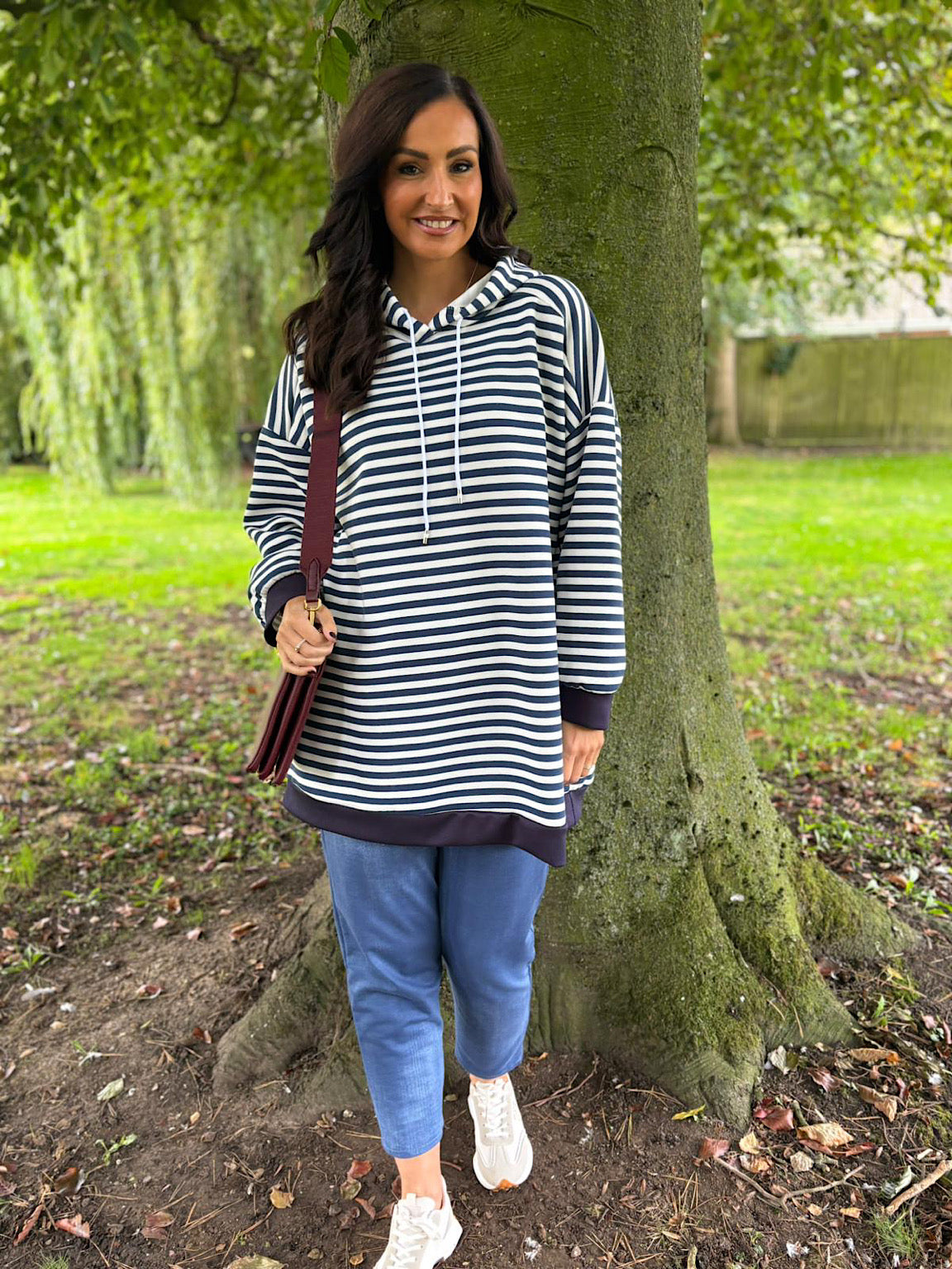 The Striped Hoodie Eleanor offers a sophisticated take on casual wear with its relaxed fit and classic stripe design. Crafted from high-quality fabric, it ensures lasting comfort and durability. Featuring a drawstring hood, this hoodie blends timeless style with practical functionality, making it an effortless addition to your refined wardrobe.