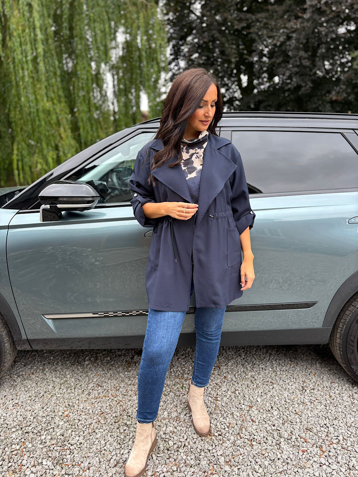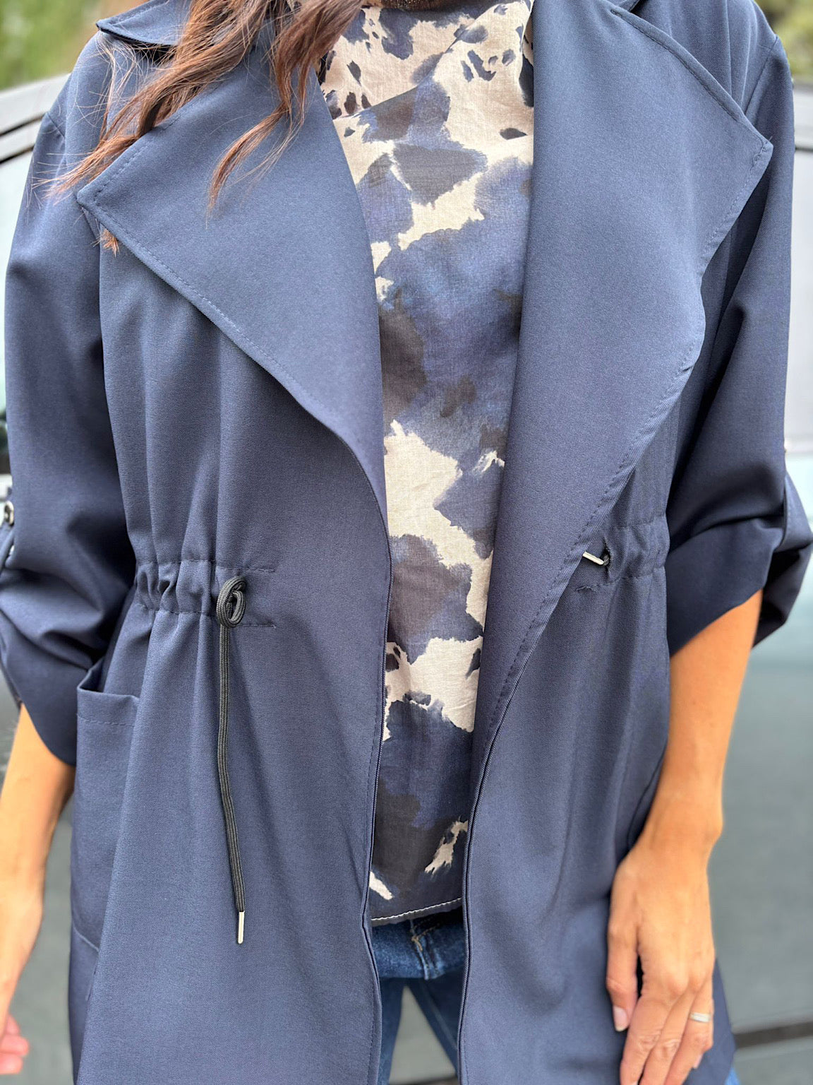 Navy Tie Waist Jacket Charlotte