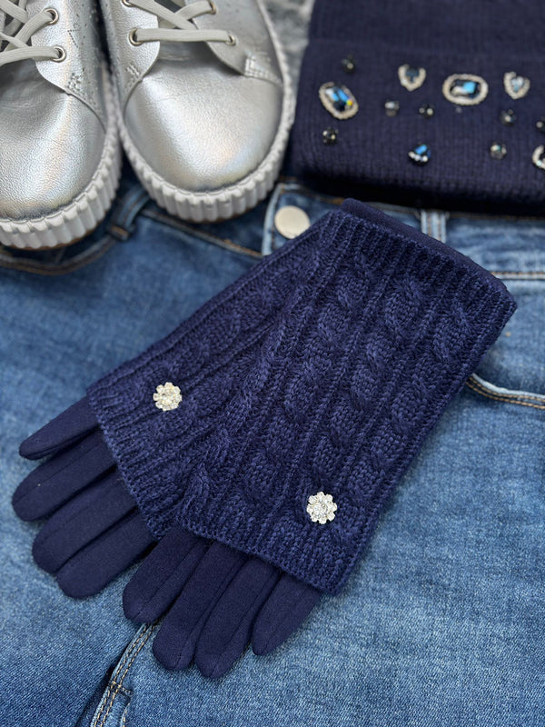 The Two Piece Gloves Set combines versatility and style with a removable sleeveless glove design. Crafted for comfort and ease, the single tasteful embellishment adds a subtle touch of elegance without overpowering your look. Perfect for adapting to changing temperatures or occasions, these gloves offer both function and fashionable flair.