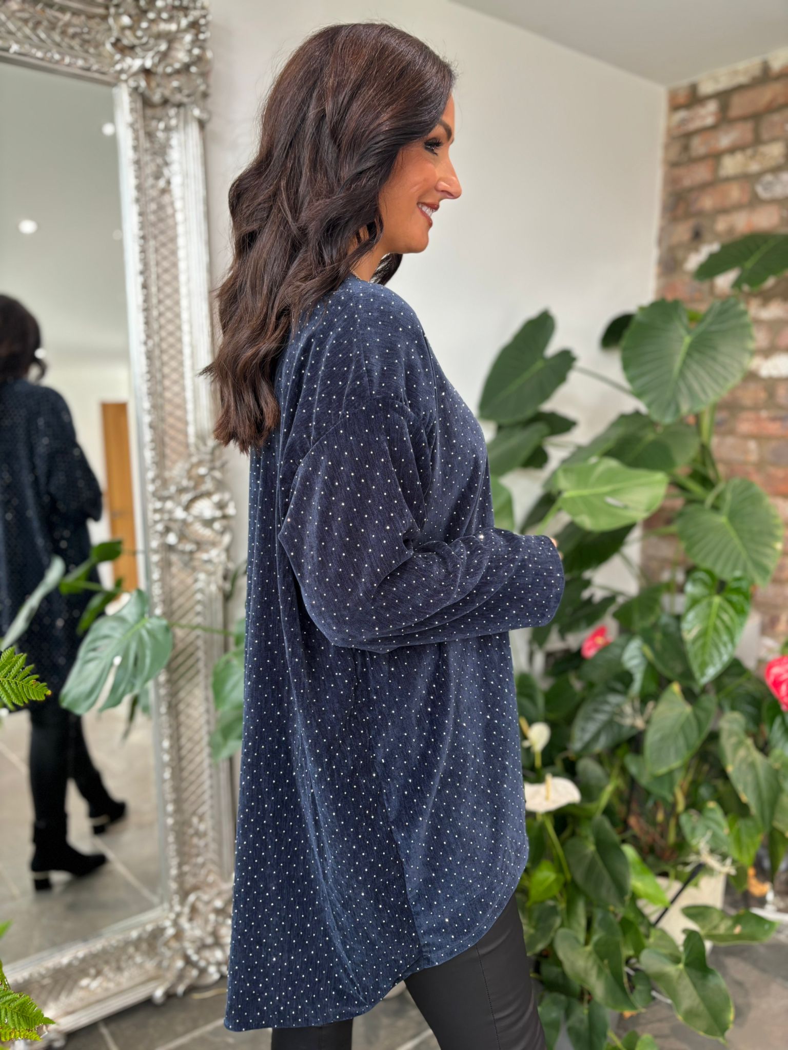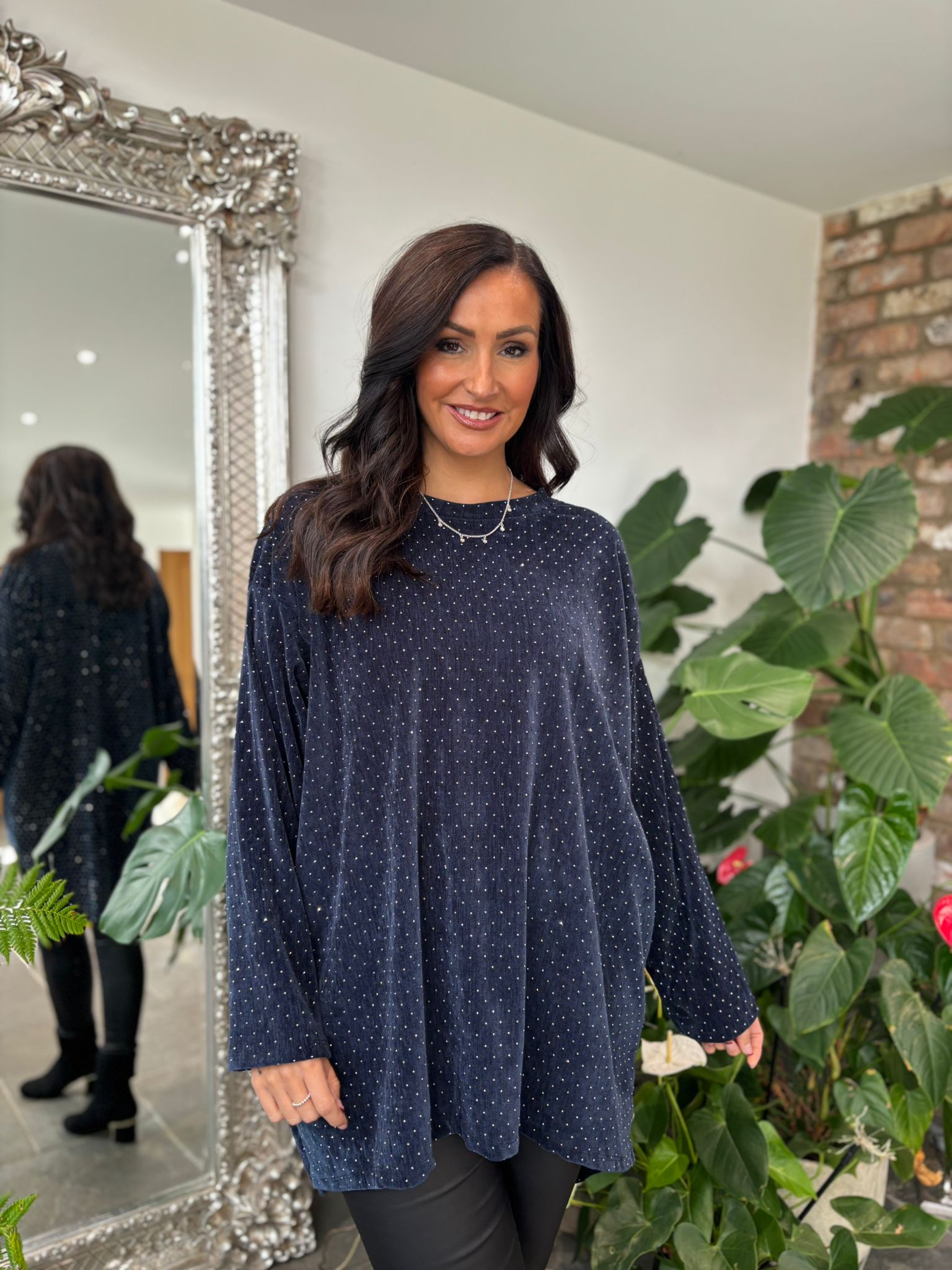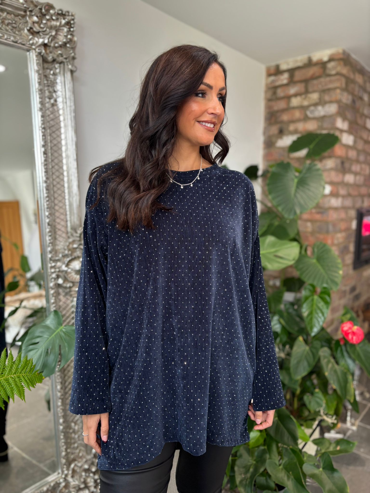 Experience elegance with the Velour Diamante Tunic Celeste, crafted from soft fabric for luxurious comfort. Its subtle diamante sparkle adds refined shimmer, while the longer back hem creates a flattering, graceful silhouette. Ideal for elevating your wardrobe with understated sophistication.