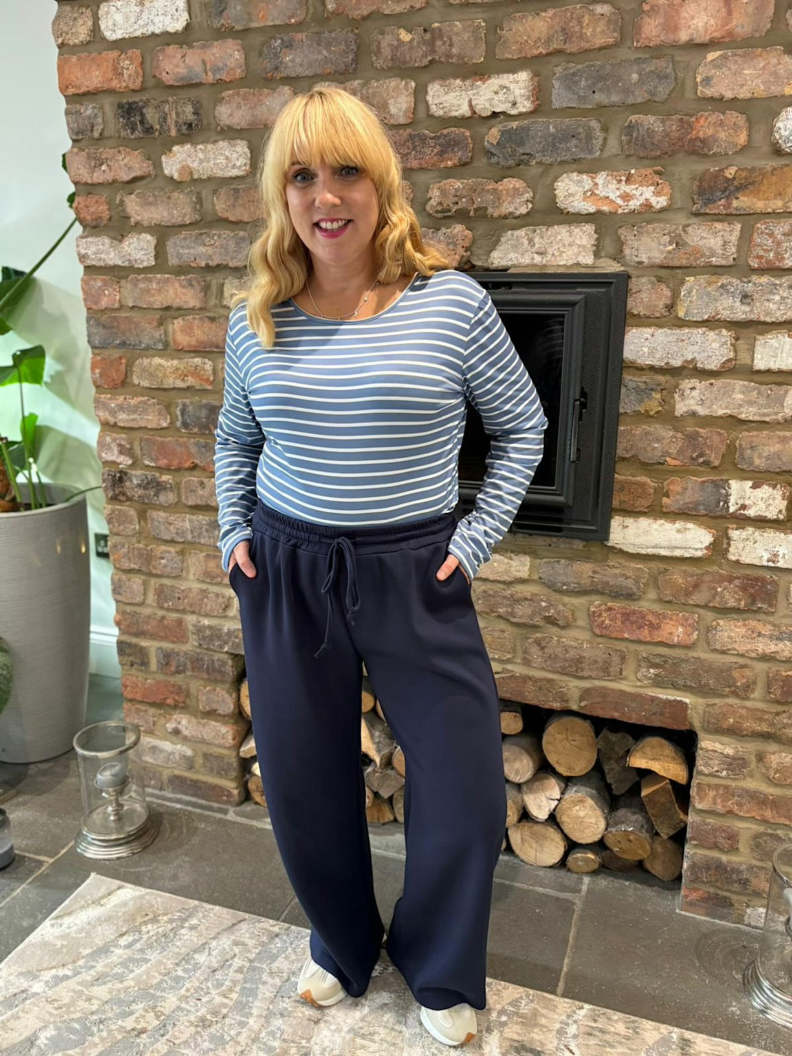 The Wide Leg Jogger Alice features a comfortable drawstring waist for a flattering fit. Crafted from a soft fabric similar to our popular Esme material, these joggers offer all-day comfort. They pair perfectly with the Alice Hooded Jacket, creating a coordinated and cosy outfit ideal for relaxation or casual outings.