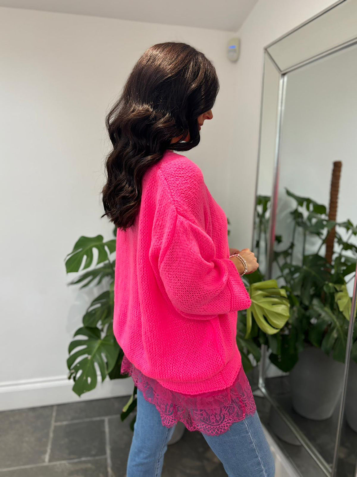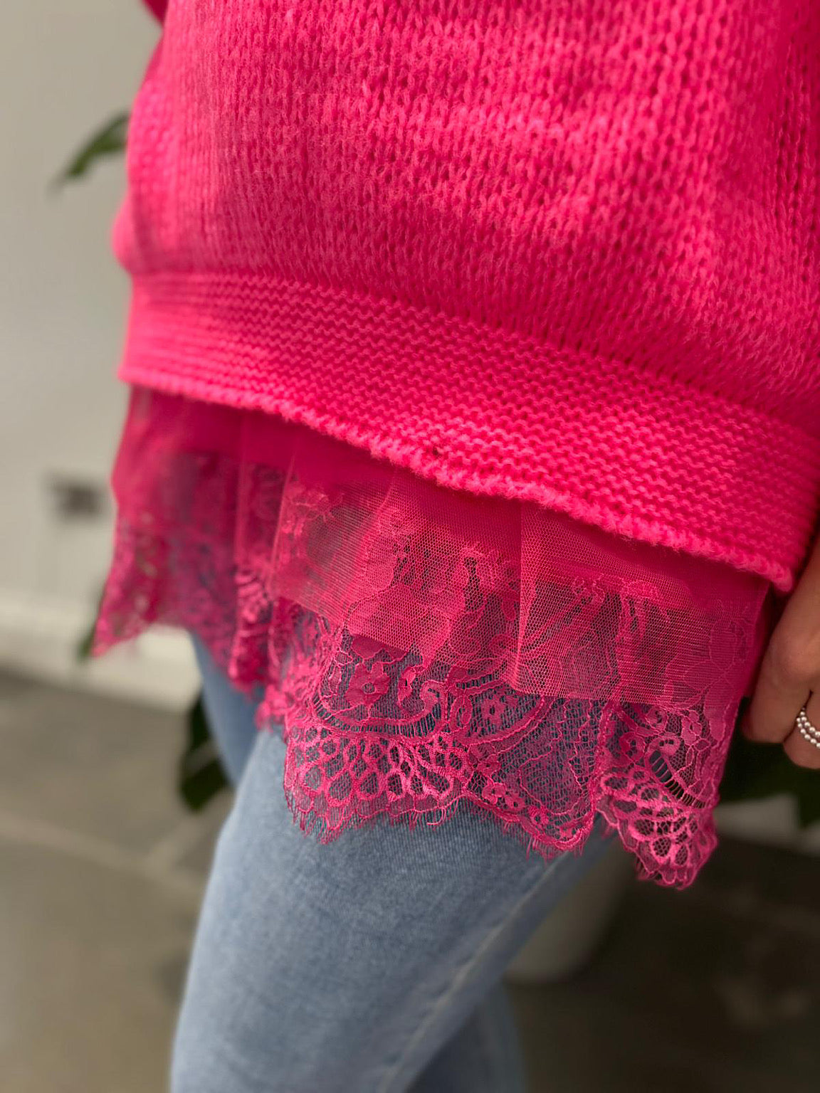 Embrace effortless elegance with this cosy V-neck knit featuring relaxed drop shoulders for a flattering, comfortable fit. The standout feature? A detachable lace hem slip underneath that adds versatility to your wardrobe. Wear it as a two-piece set for layered sophistication, or remove the slip for a classic knit look. Perfect for transitional seasons, this piece works beautifully with your everyday essentials while offering that extra touch of refinement when you need it.