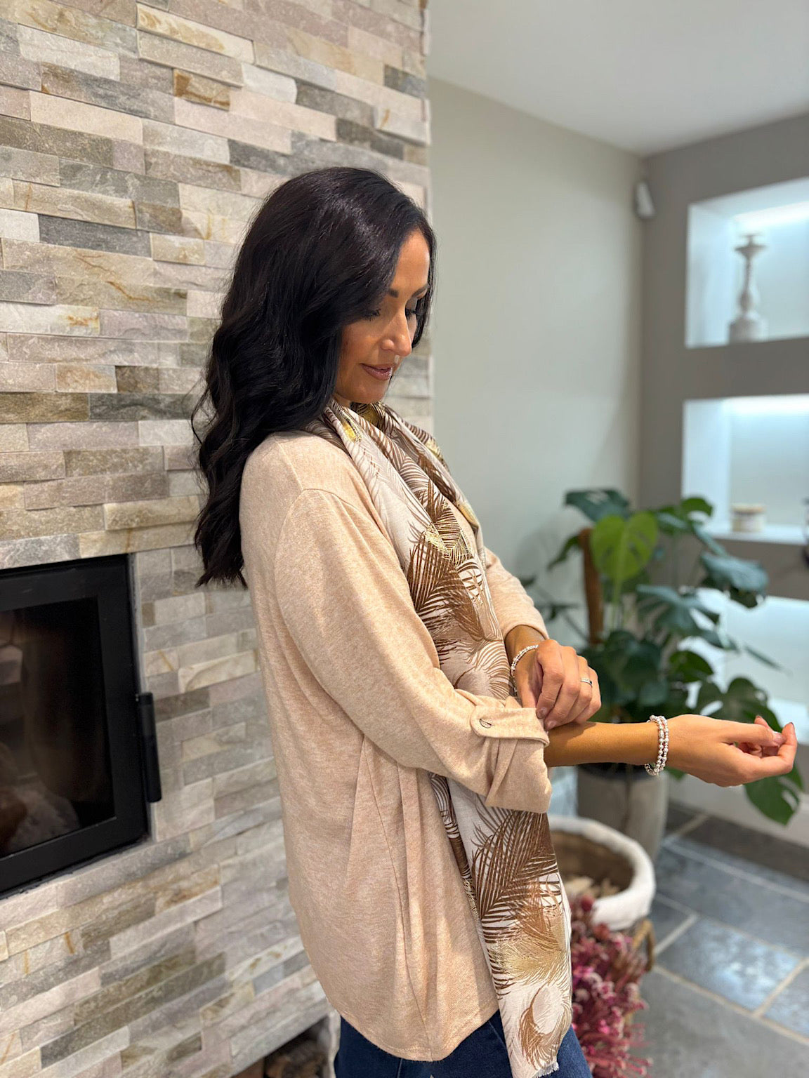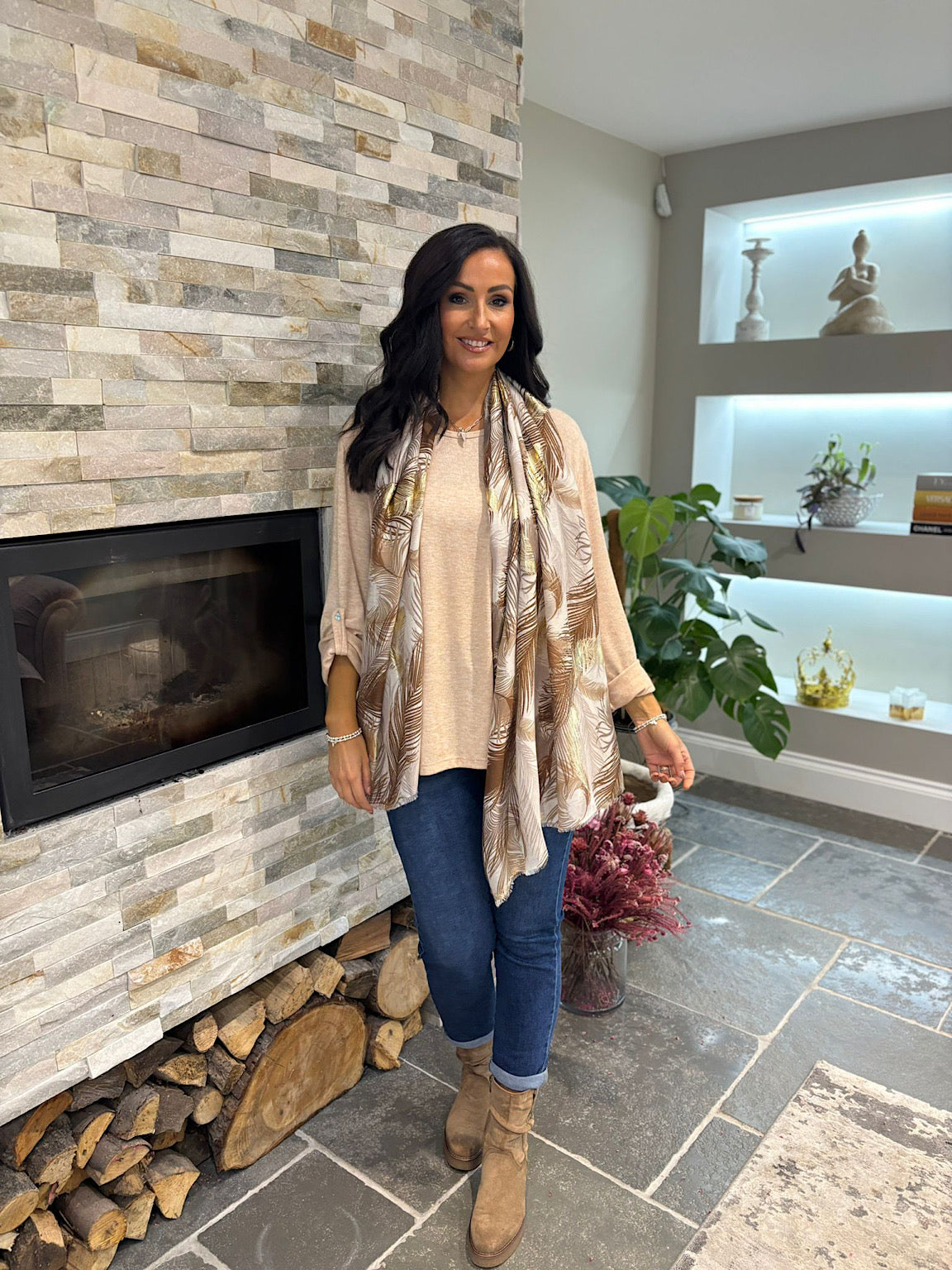 Experience cosy comfort with the Two Piece Knit Danni. Crafted from a soft knit fabric, this set features a detachable scarf for versatile styling and warmth when you need it. The button detail on the sleeve adds a subtle touch of elegance while allowing easy adjustment for comfort. Perfect for layering, this piece offers both practicality and style to keep you comfortable all day.