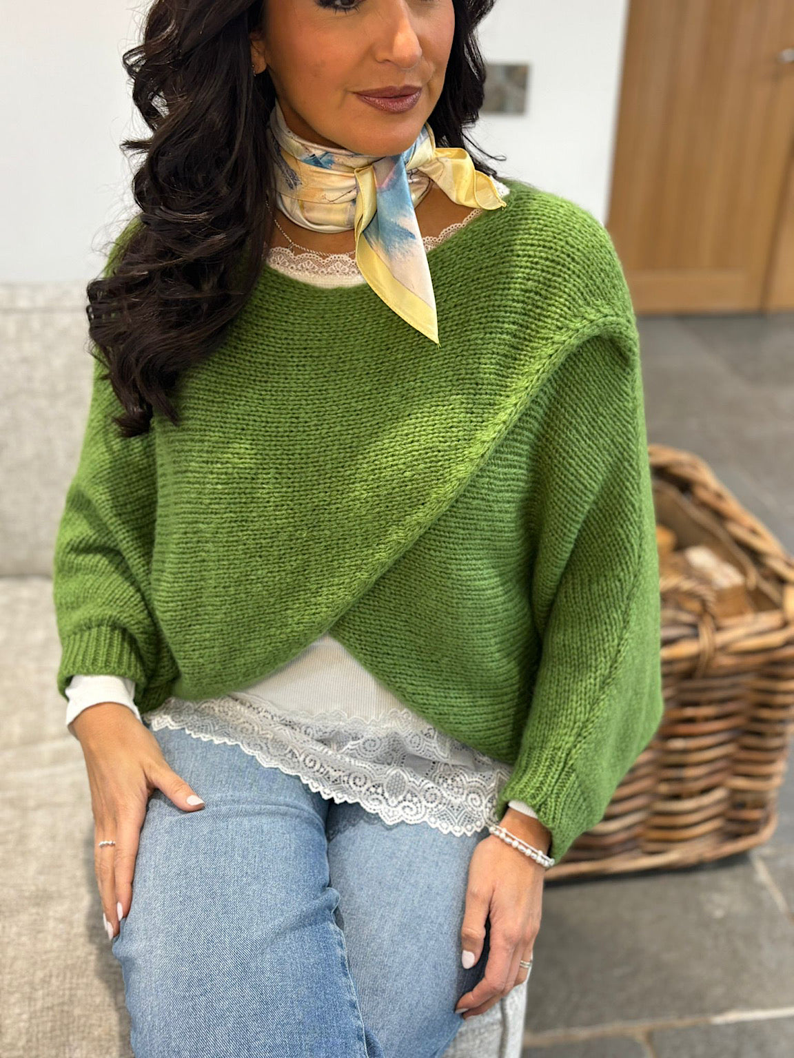 Pistachio Knitted Wrap Jumper Nell