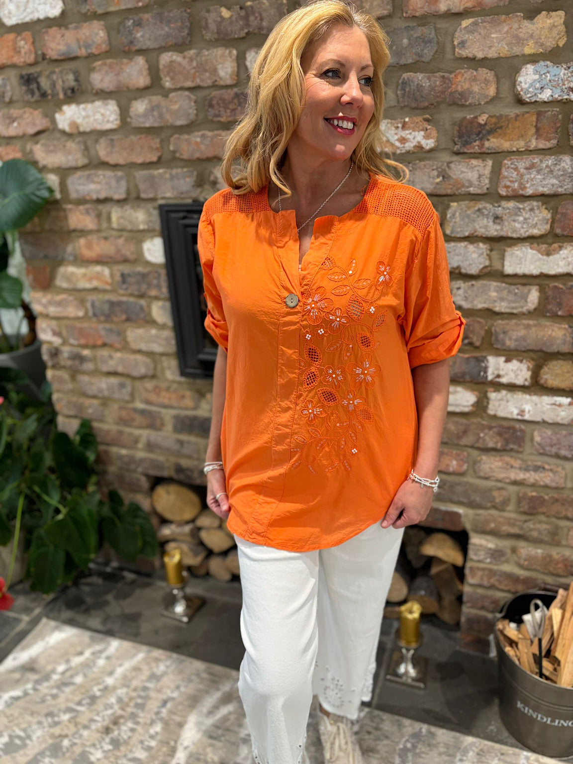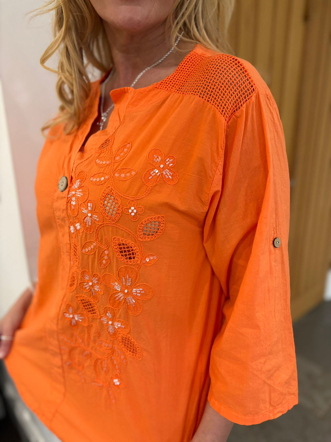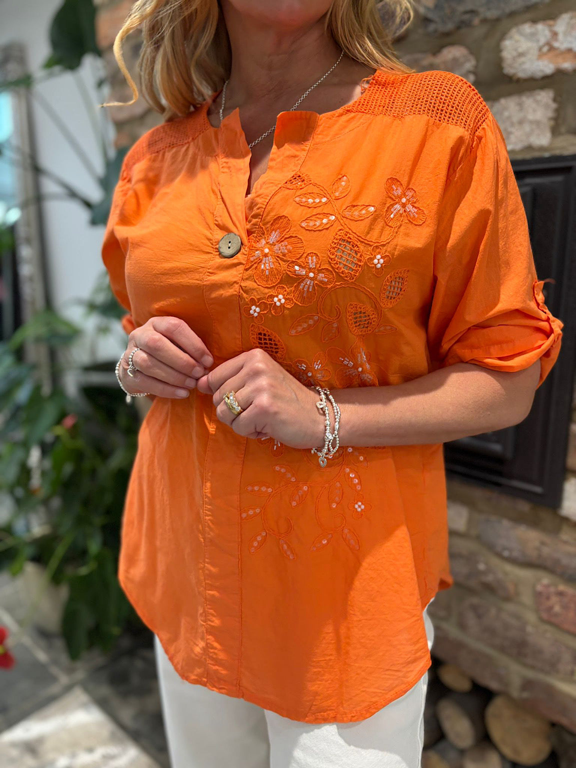 Orange Embroidered Floral Top Jasmine