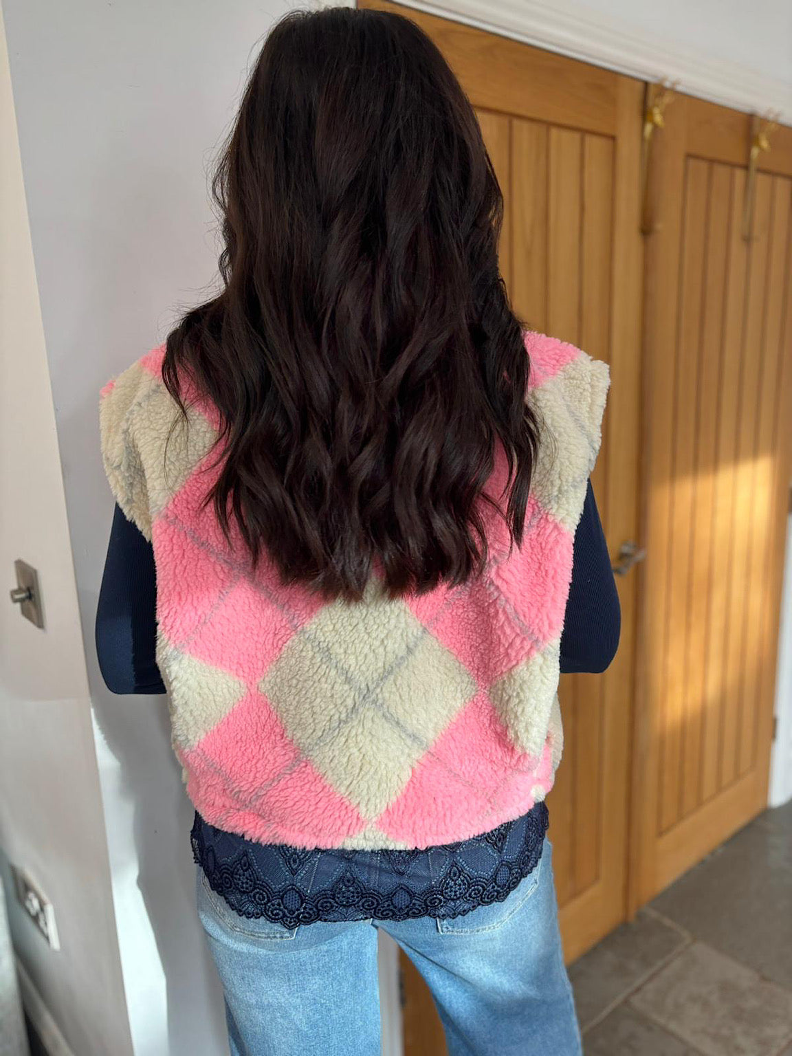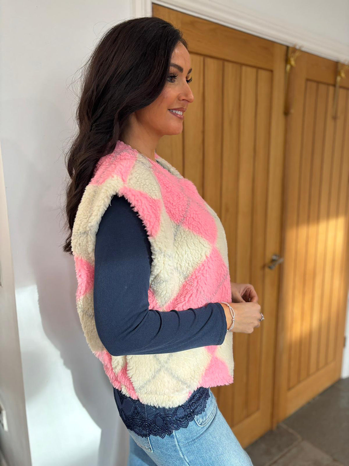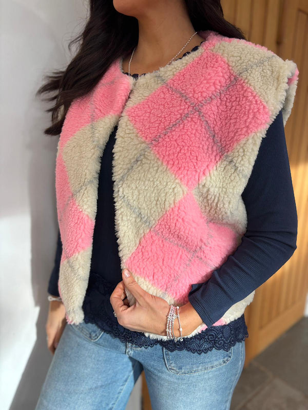 Pink Argyle Fleece Gilet Eva