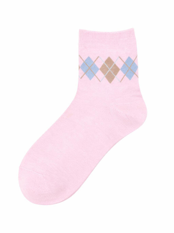Argyle Pattern Ankle Socks Add a touch of timeless style to your everyday essentials with these charming argyle ankle socks. Featuring a cute geometric pattern that's perfect for the season, they blend classic design with modern comfort. Crafted from a soft cotton blend, these socks offer breathability and durability for all-day wear. Whether you're dressing up or keeping it casual, they're the ideal finishing touch to any outfit.