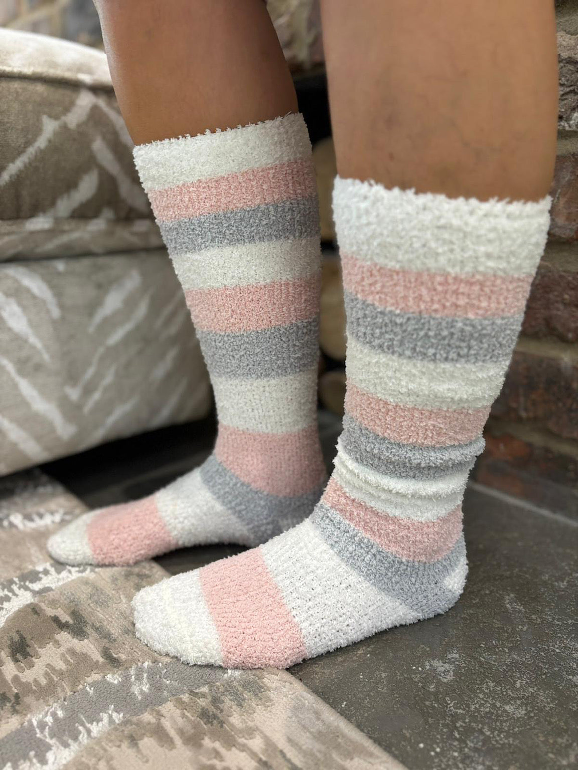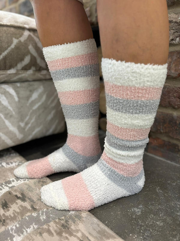 Pink Cosy Striped Knee High Socks