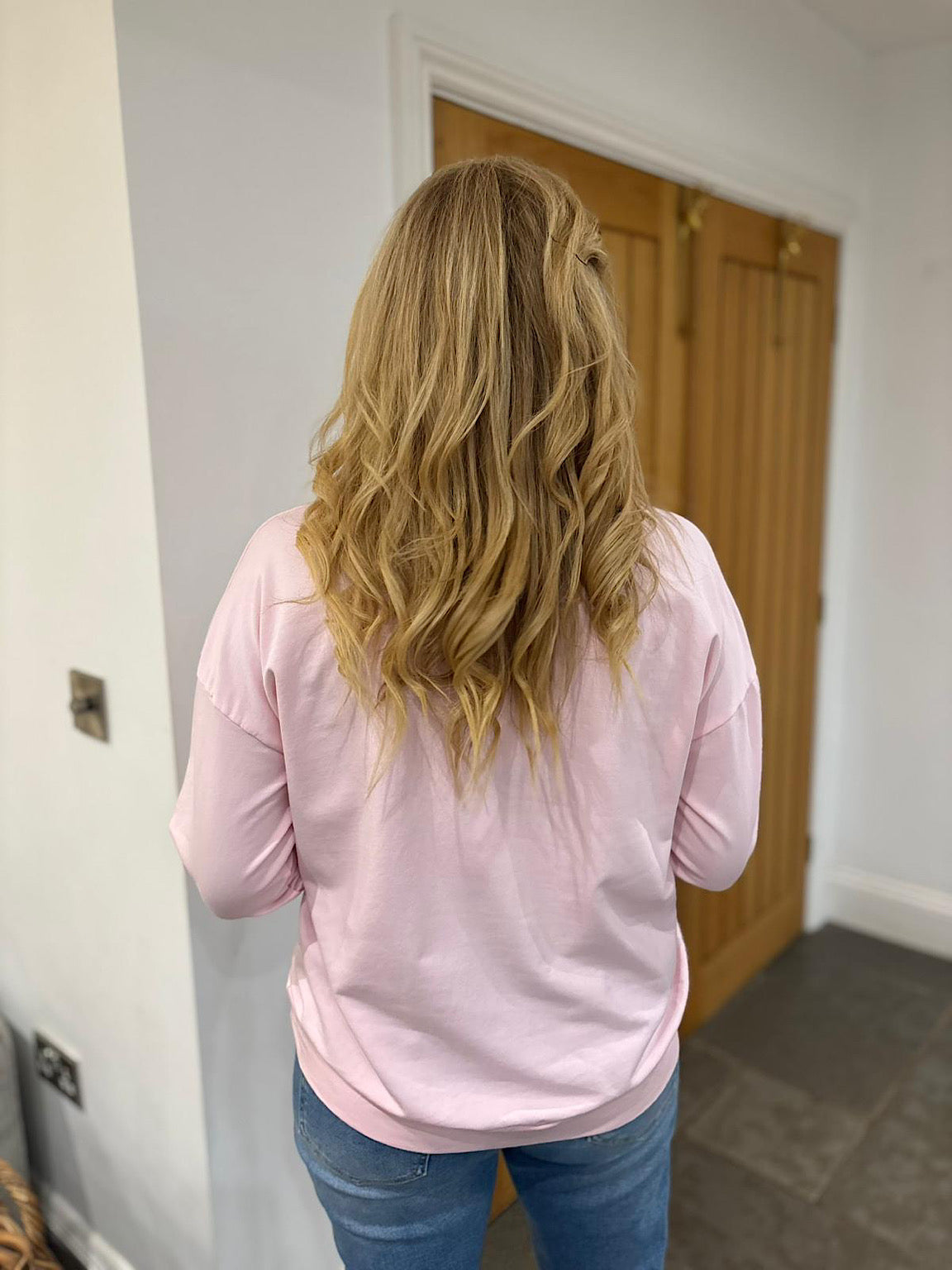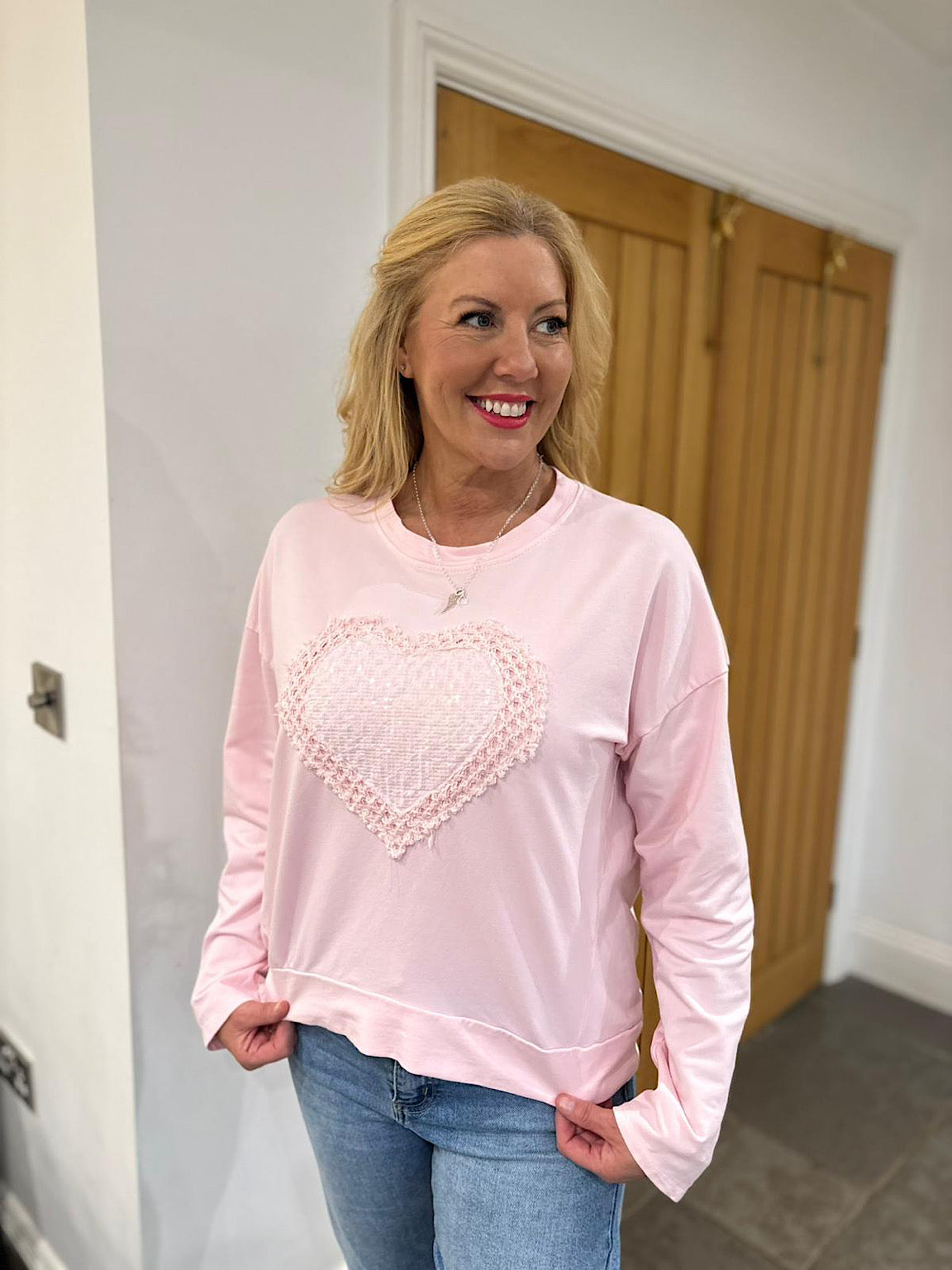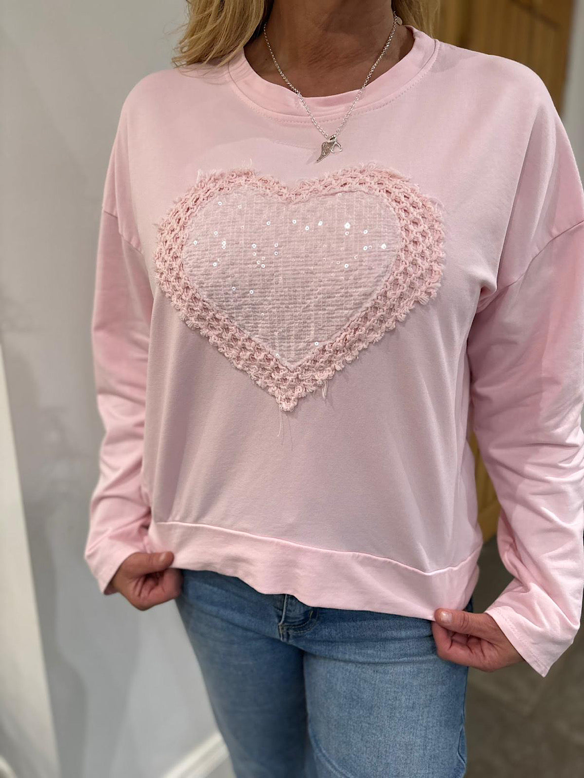 Pink Crochet Sequin Heart Sweatshirt Wren