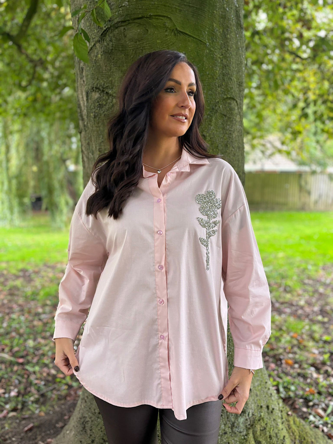 Pink Diamante Flower Shirt Kristie
