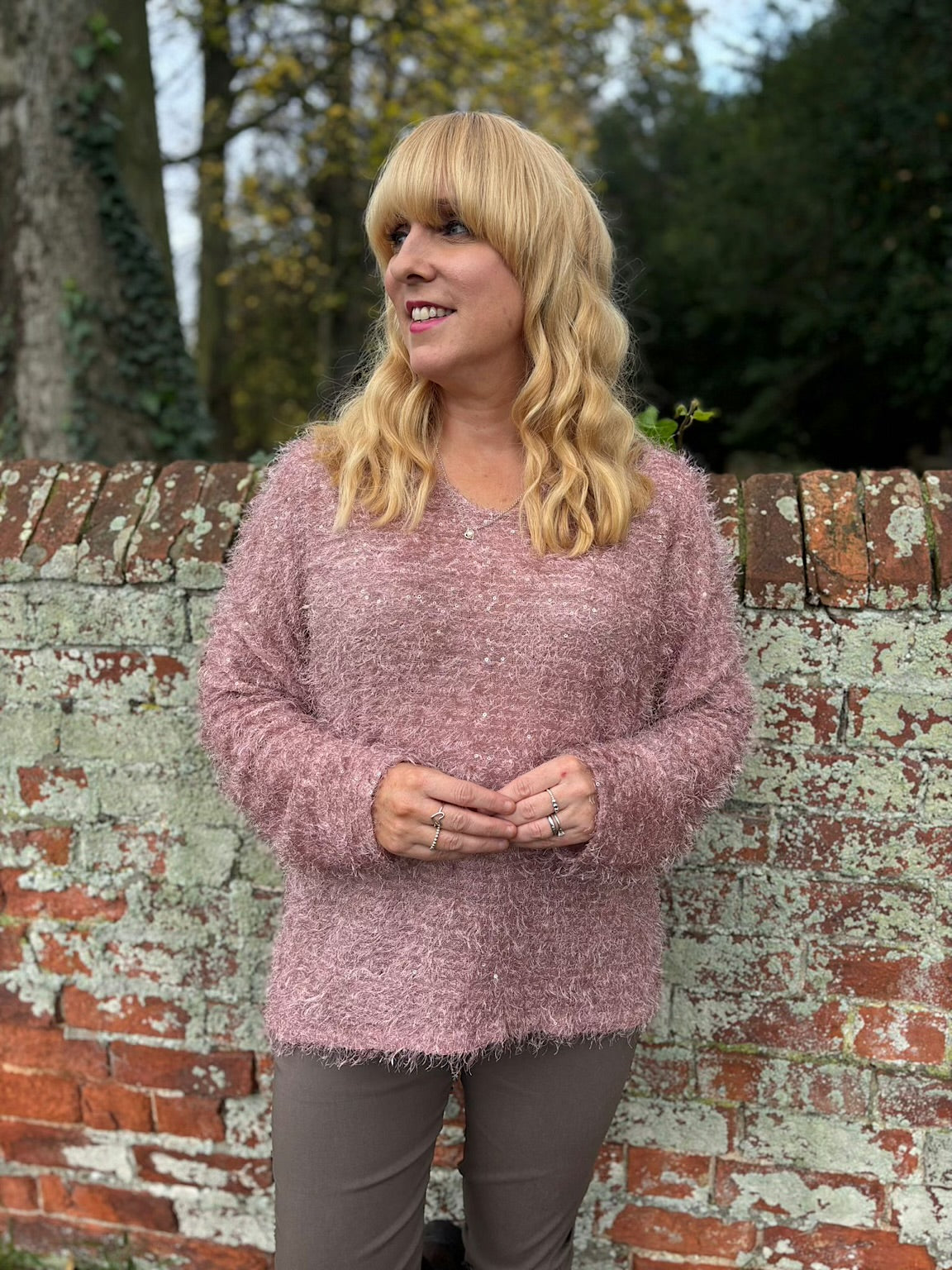 Elevate your wardrobe with this Eyelash Knit Marilyn, a lightweight piece that combines texture and glamour. The delicate eyelash knit fabric pairs beautifully with subtle clear sequins, adding just the right amount of sparkle without overwhelming your look. Perfect for layering or wearing solo, this versatile top brings effortless sophistication to any occasion. The feather-light construction ensures all-day comfort, making it an ideal choice for both casual outings and special events.