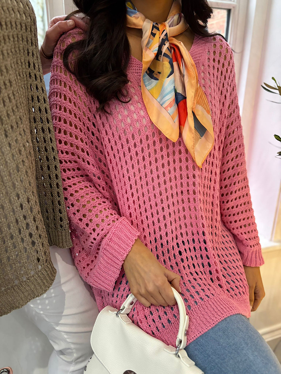 Effortlessly versatile, the Multi Hole V Neck Knit Sammy brings contemporary style to your everyday wardrobe. This lightweight knit features an eye-catching multi-hole design paired with a flattering V neckline, while its spacious, flowy silhouette makes it perfect for layering over basics or wearing solo. Whether you're dressing up or keeping it casual, this piece adapts beautifully to your personal style and seasonal needs.