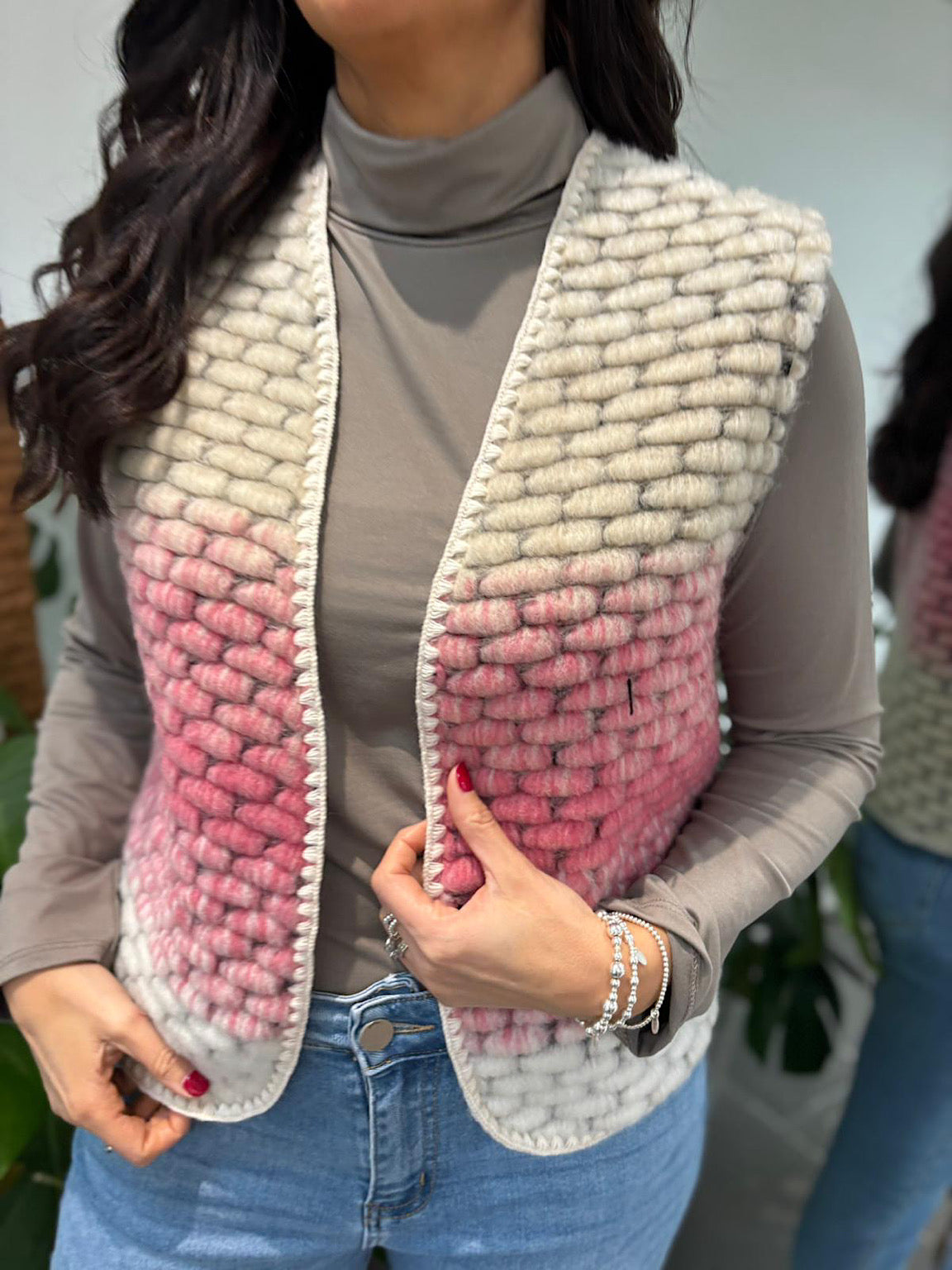 Pink Ombre Knitted Stripe Gilet