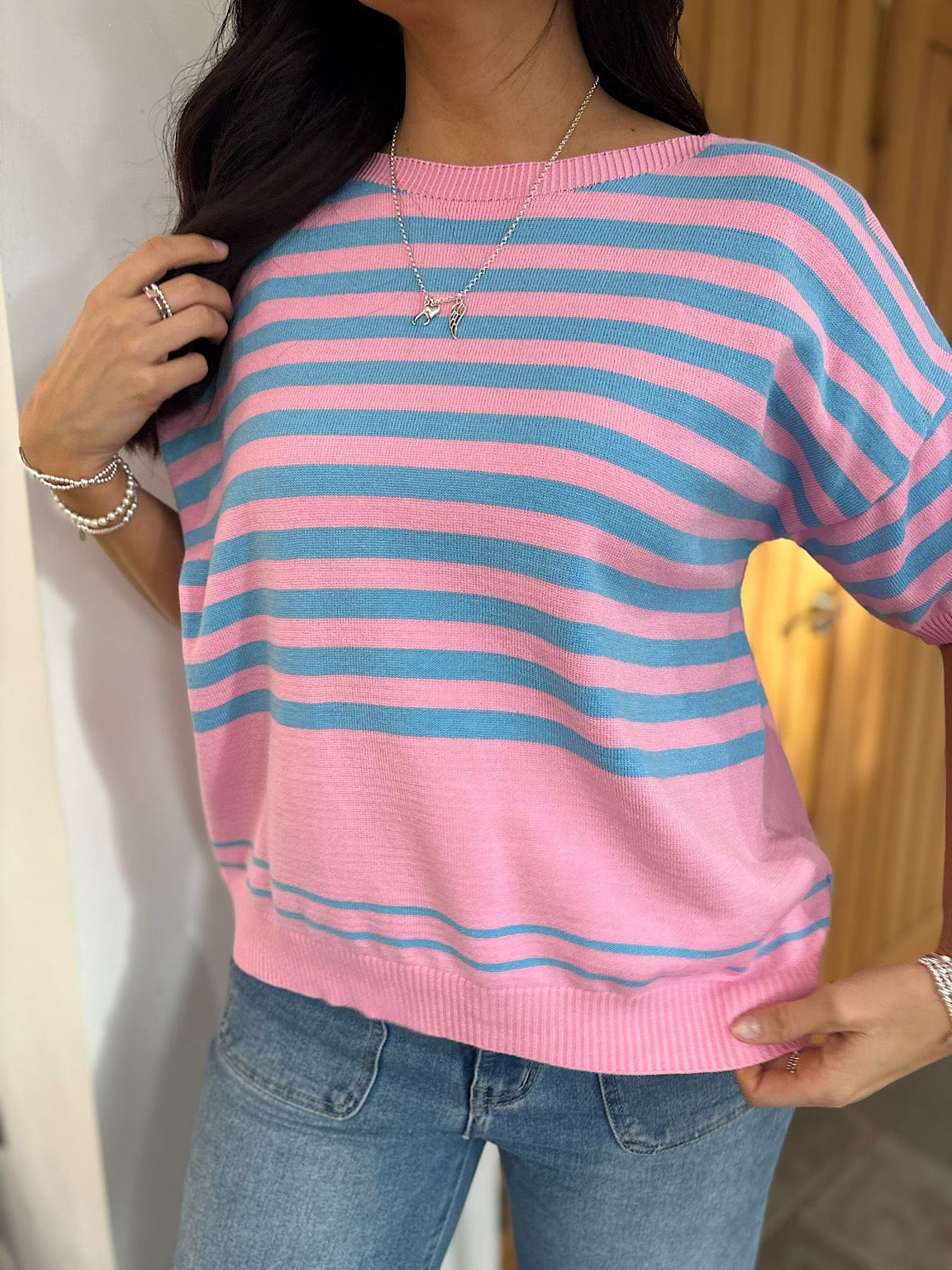 Pink Short Sleeve Stripe Jumper Adele