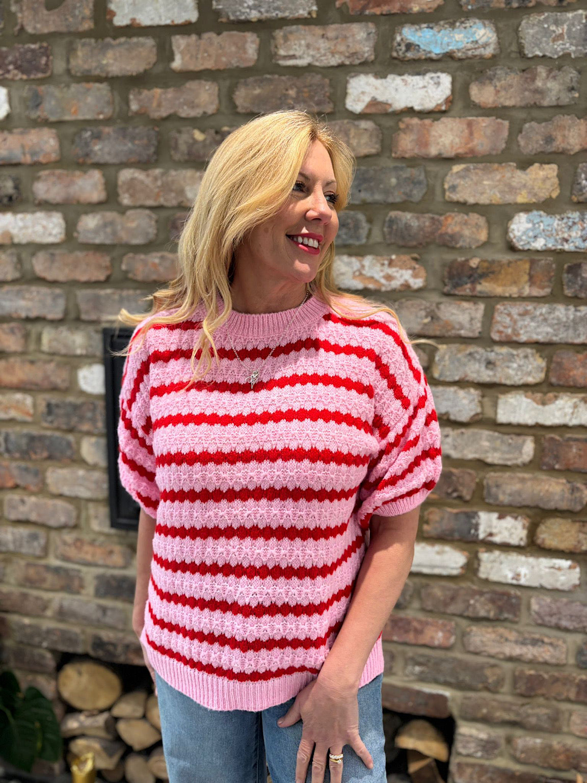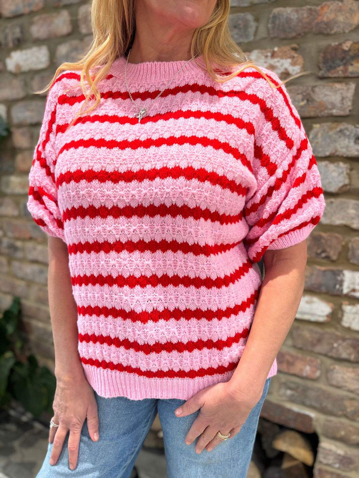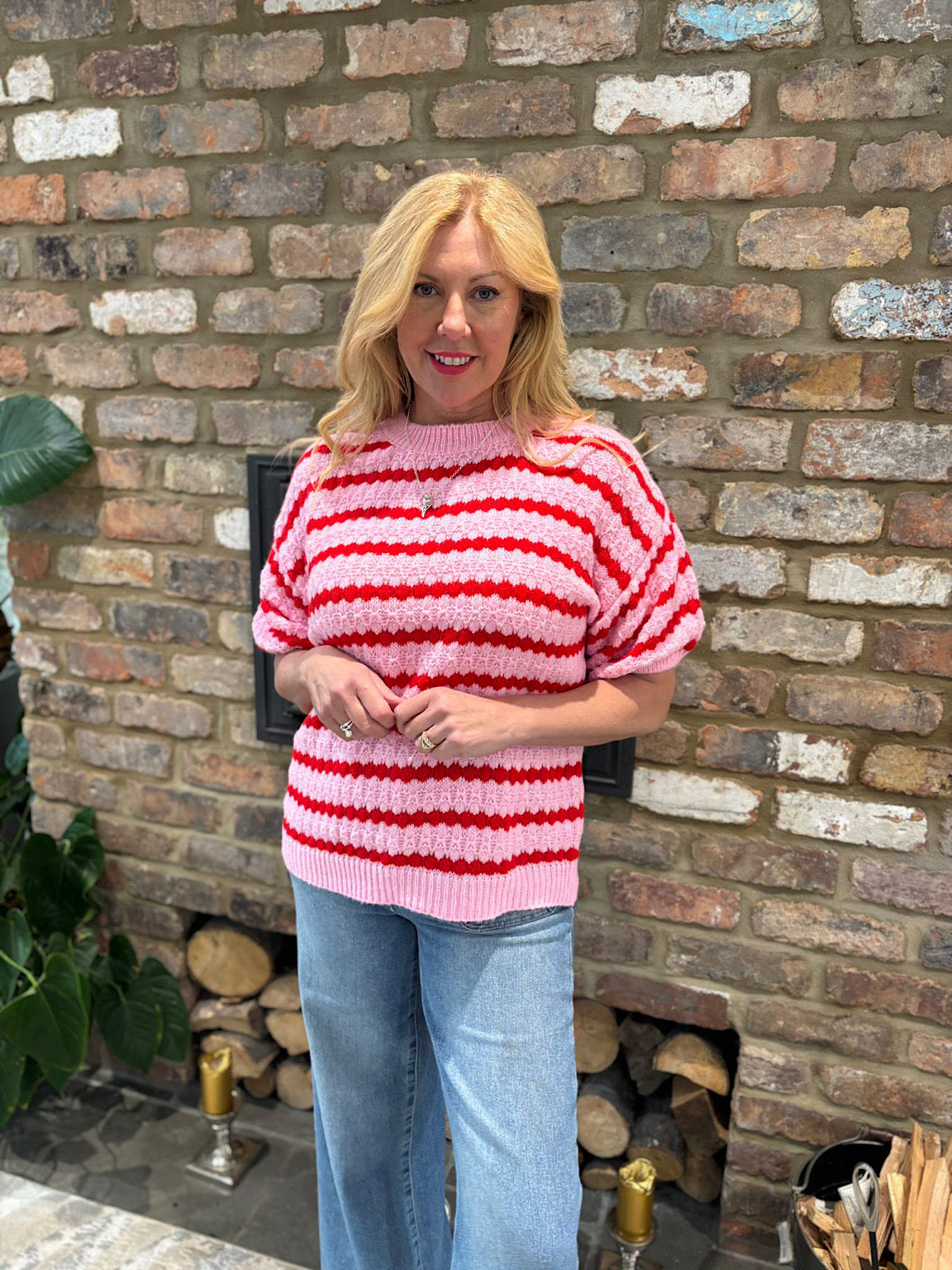 Pink Striped Short Sleeve Knit Emily