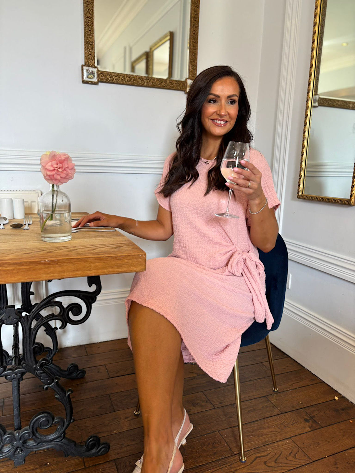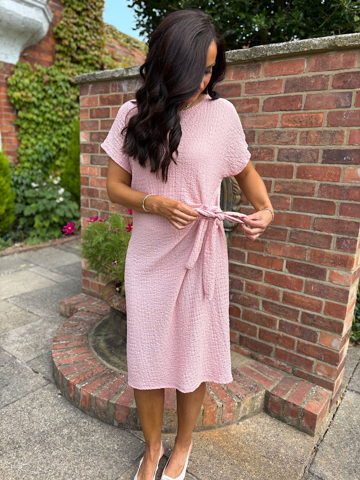 This Textured Tie Dress Corrina offers a soft, comfortable feel with a unique textured fabric. The side tie allows you to adjust the fit to your preference, ensuring both style and comfort throughout the day. Perfect for those seeking a flattering and adaptable dress.