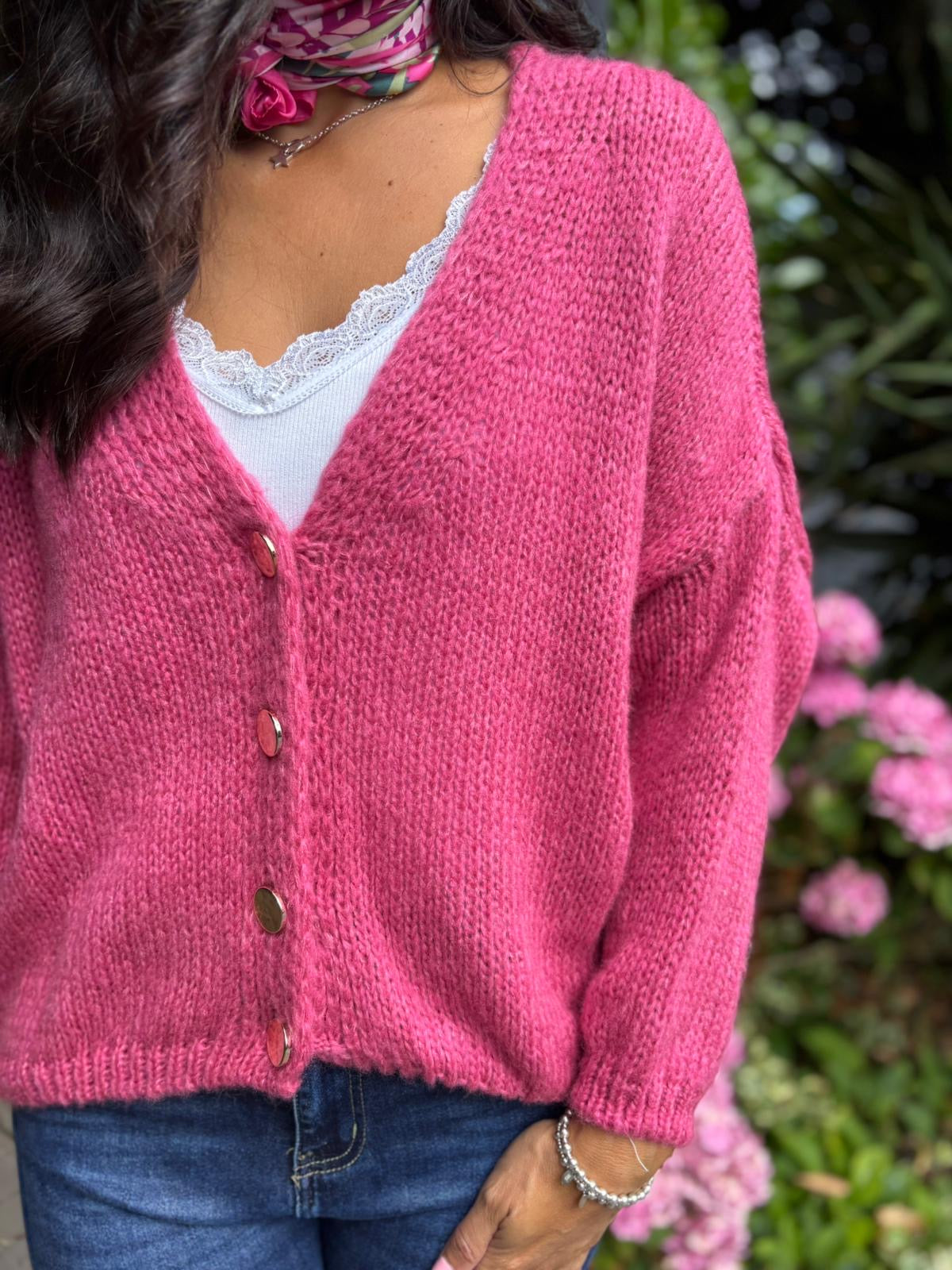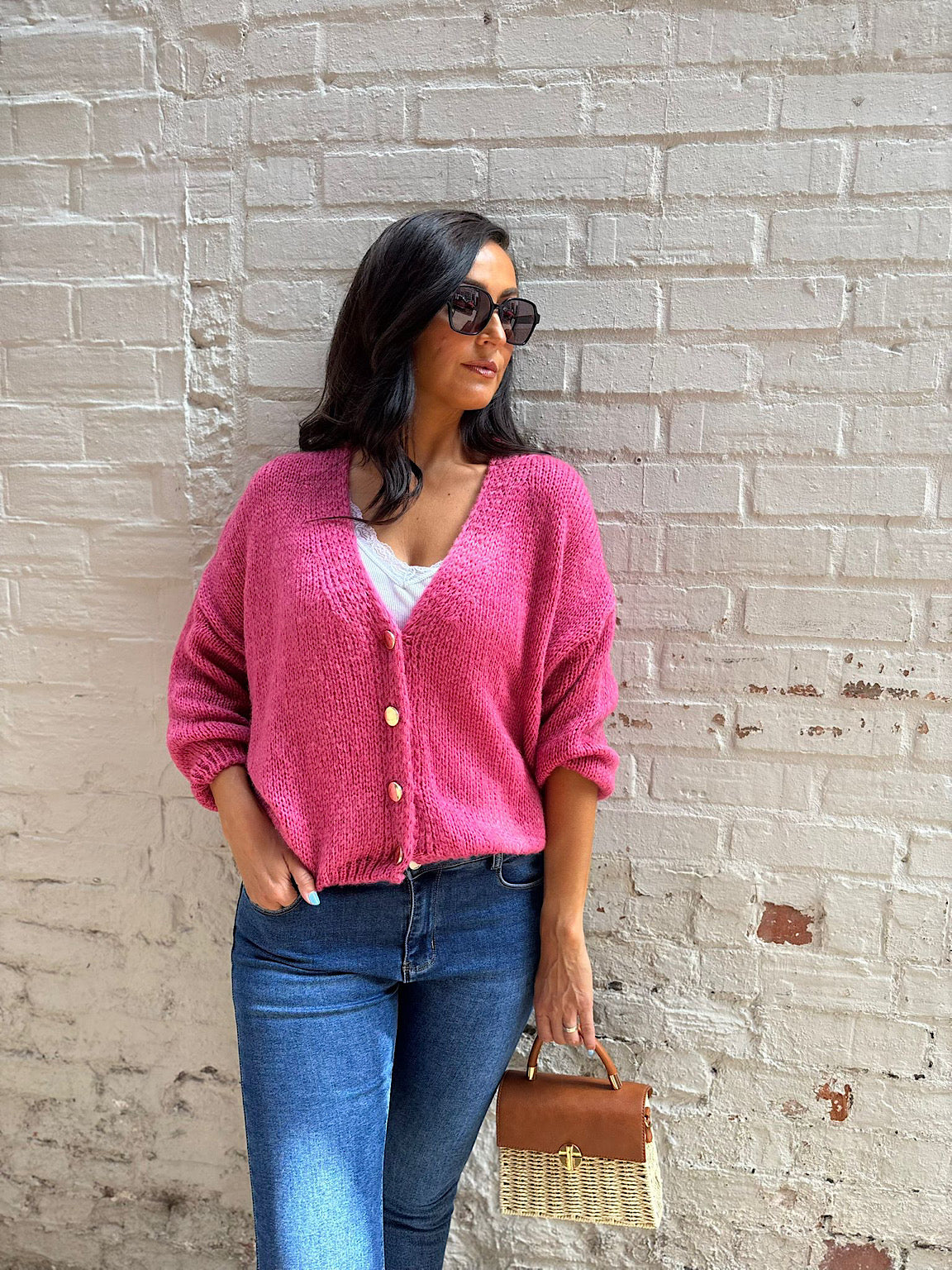 This Button Cardi Rena features a soft knit fabric with a button-front design and long sleeves, offering comfortable warmth and easy layering. Its cheerful lemon hue adds a fresh touch to your wardrobe, making it a versatile piece for everyday wear. Perfect for cooler days, this cardigan combines practicality with a cosy feel to keep you comfortable throughout the day.