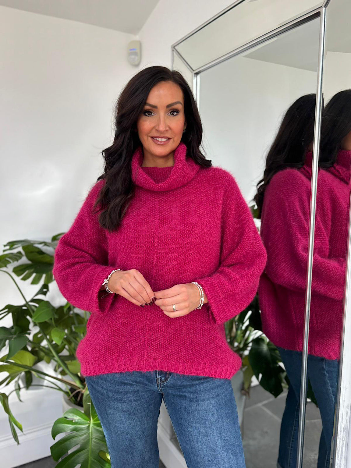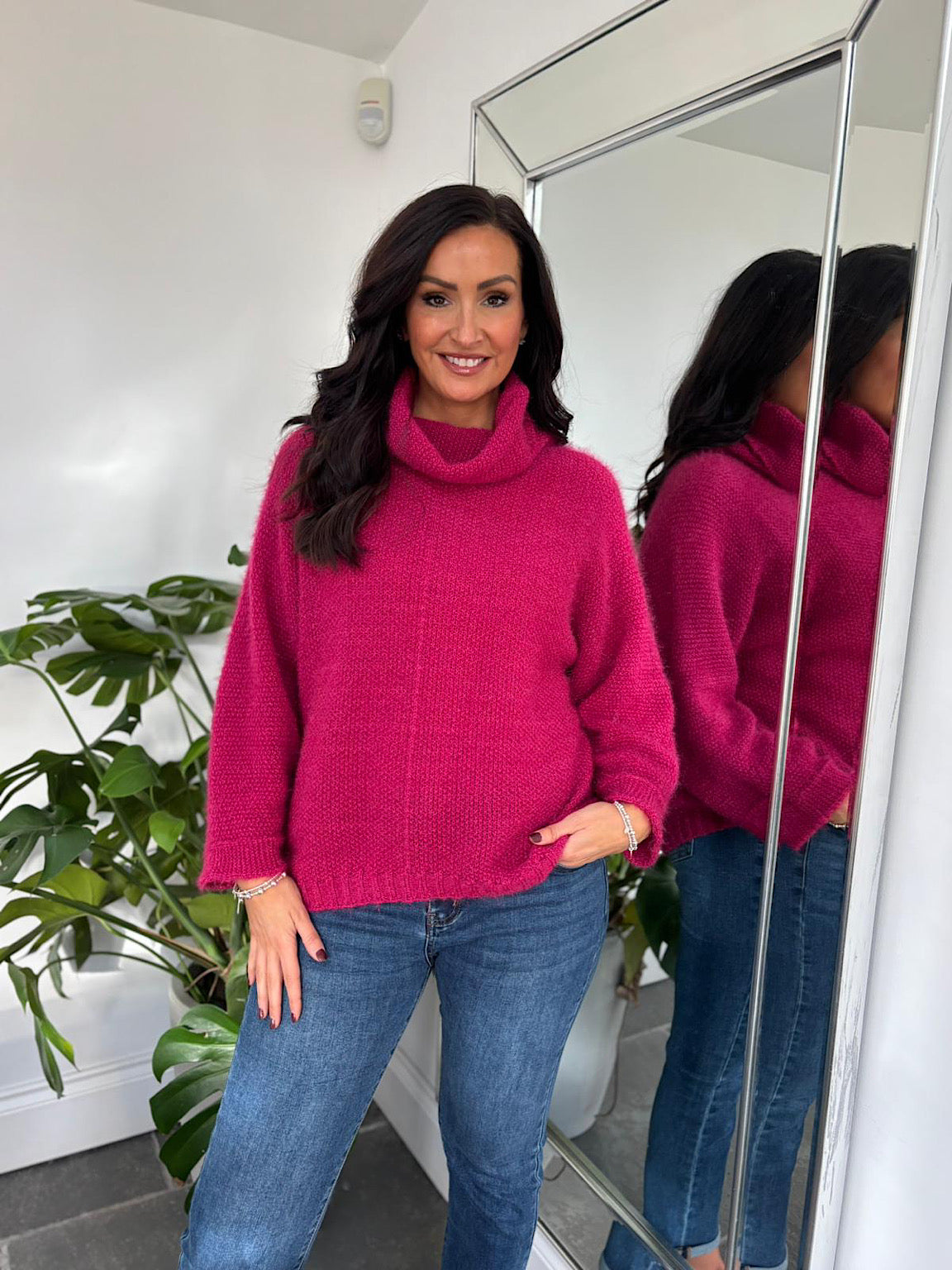 Stay warm and stylish with our Roll Neck Shimmer Knit Susan. Made from a cosy fabric, this sweater features a subtle shimmer for a touch of elegance. The roll neck adds extra warmth and comfort. Perfect for staying chic during the colder months.