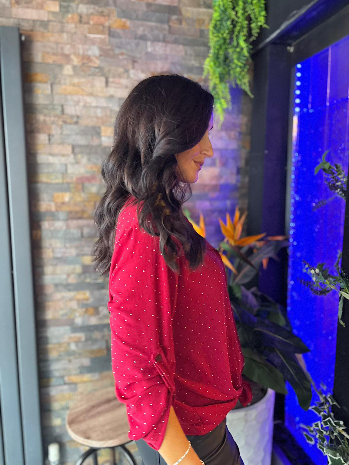 Elevate your everyday style with this charming blouse, featuring delicate diamante detailing that catches the light beautifully. The flattering tie front adds a touch of elegance and allows you to adjust the fit to suit your preference. Perfect for dressing up or down, this versatile piece brings a hint of sparkle to any outfit while maintaining a sophisticated, wearable aesthetic.