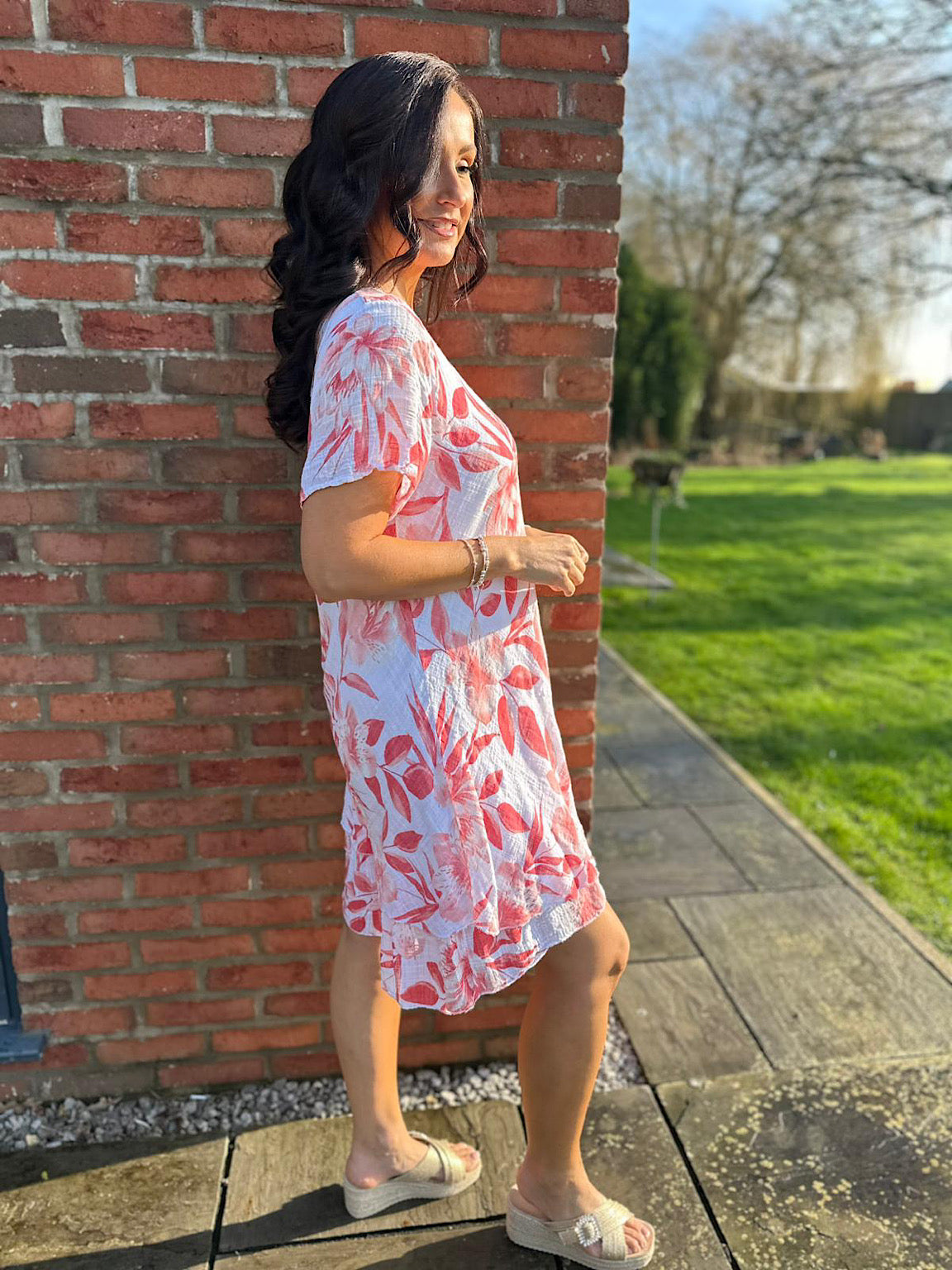Introducing the Floral Print Cotton Dress Clarice – a timeless piece that combines comfort with effortless style. Crafted from soft, lightweight cotton and lined with an equally gentle cotton layer, this dress moves beautifully with you throughout your day. The stunning floral design adds a touch of natural elegance to any occasion, whether you're dressing up or keeping things casual. Perfect for those who appreciate quality fabrics and thoughtful design, this dress is a versatile wardrobe essential that feels as good as it looks.