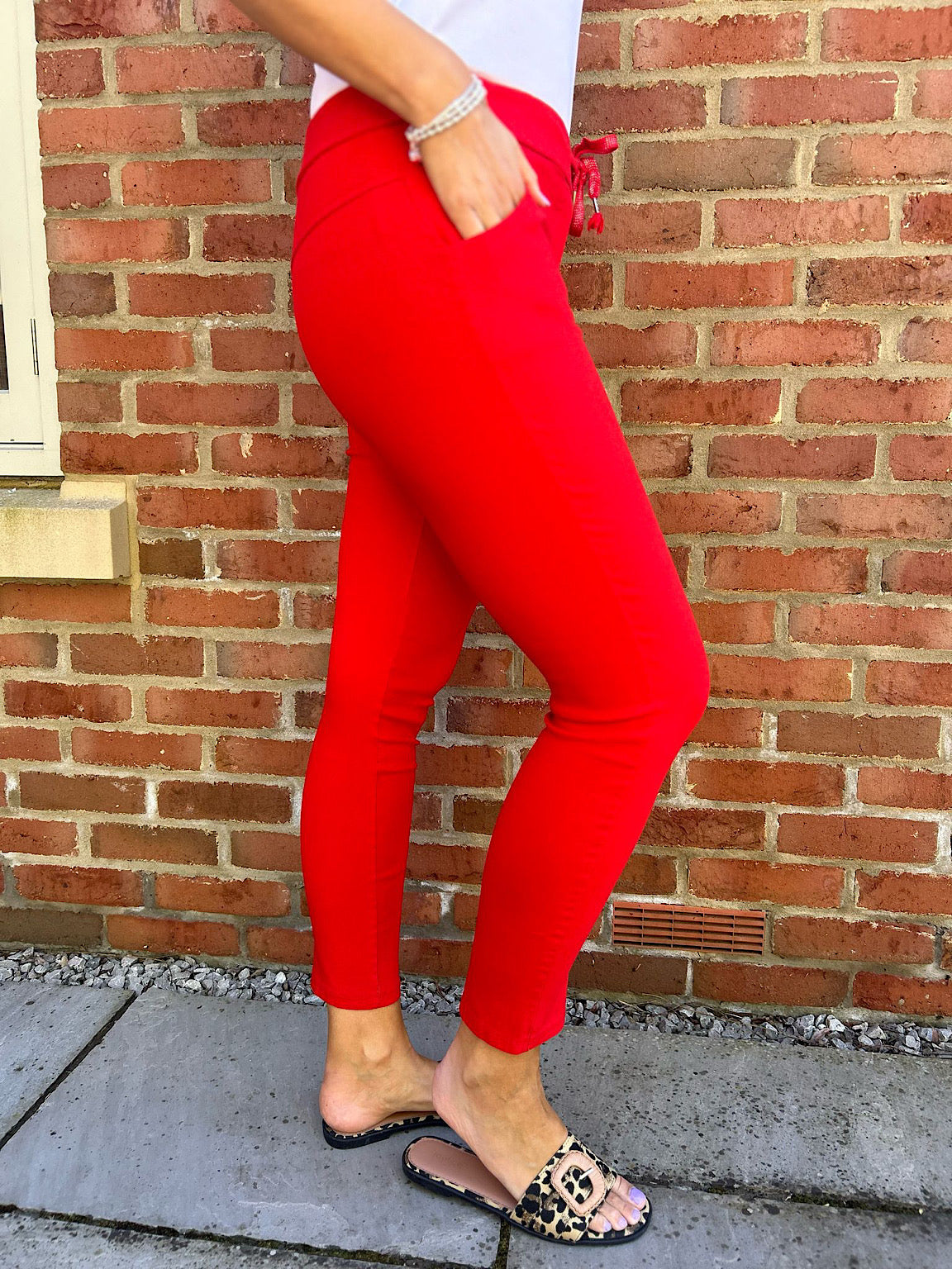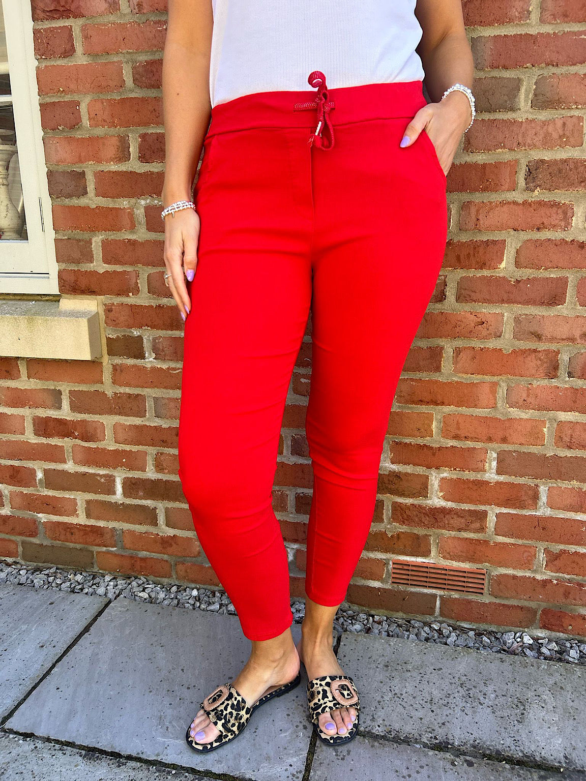 These Magic Trousers are perfect for staycations, holidays or even just going out walking with the dog. Available in a variety of colours, they are super stretchy, comfortable and have a lurex detail drawstring. If you would like a looser boyfriend style fit then we recommend going for the size up.