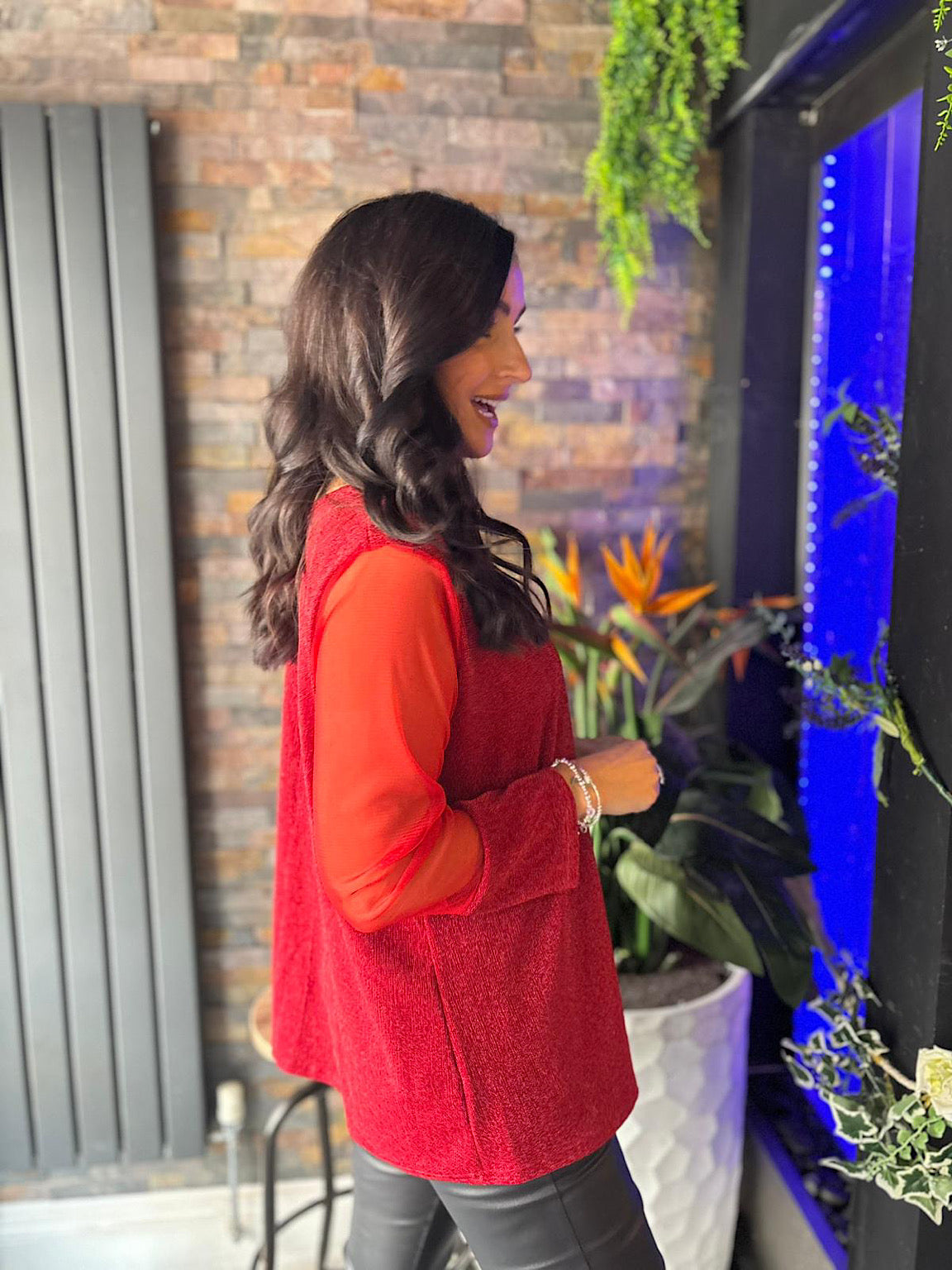 Elevate your party look with the Grape Sparkle Mesh Sleeve Top Lucy. Featuring shimmering fabric with elastic stretch, this lightweight top offers both comfort and style. Its delicate mesh sleeves and glittering cuffs add a touch of festive elegance, perfect for dancing the night away while feeling full of confidence.