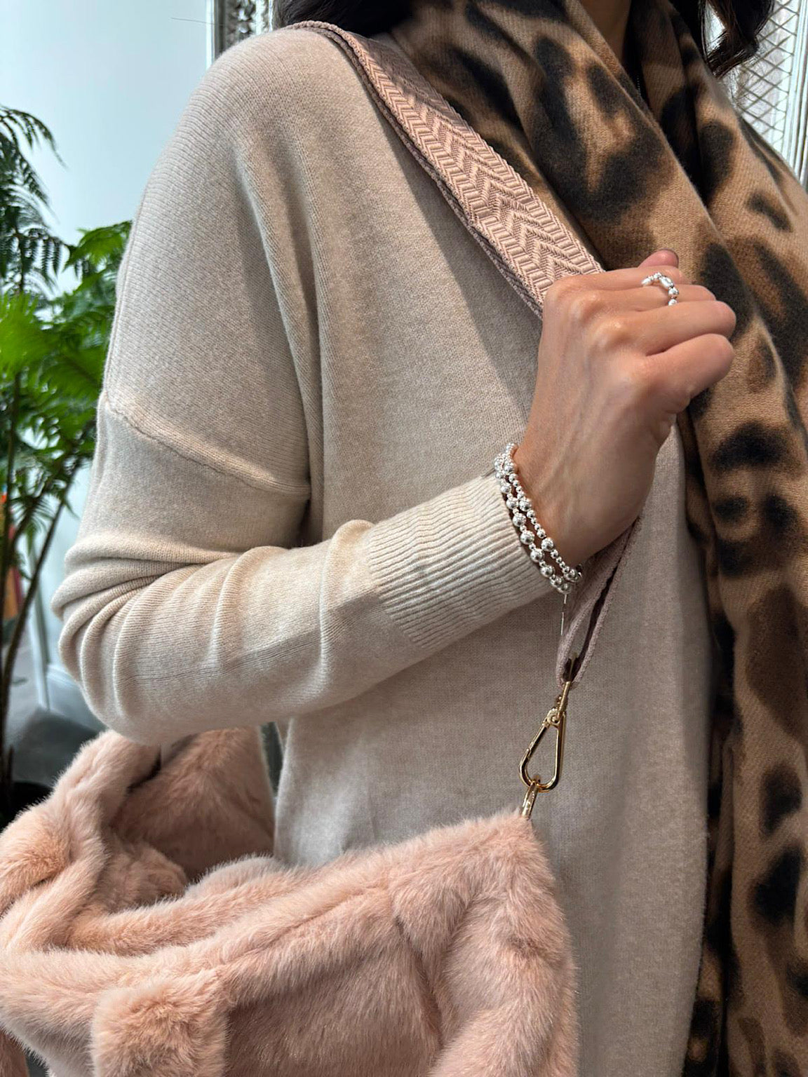 Experience the perfect blend of style and comfort with the Fluffy Tote Bag. Its soft, fluffy texture offers cosy appeal, while comfortable straps ensure easy carrying all day. The detachable shoulder strap adds versatility for hands-free convenience. Secure your belongings with the reliable zip closure, making this tote both practical and charming for everyday use.