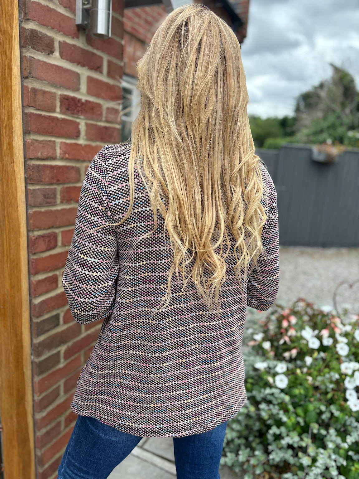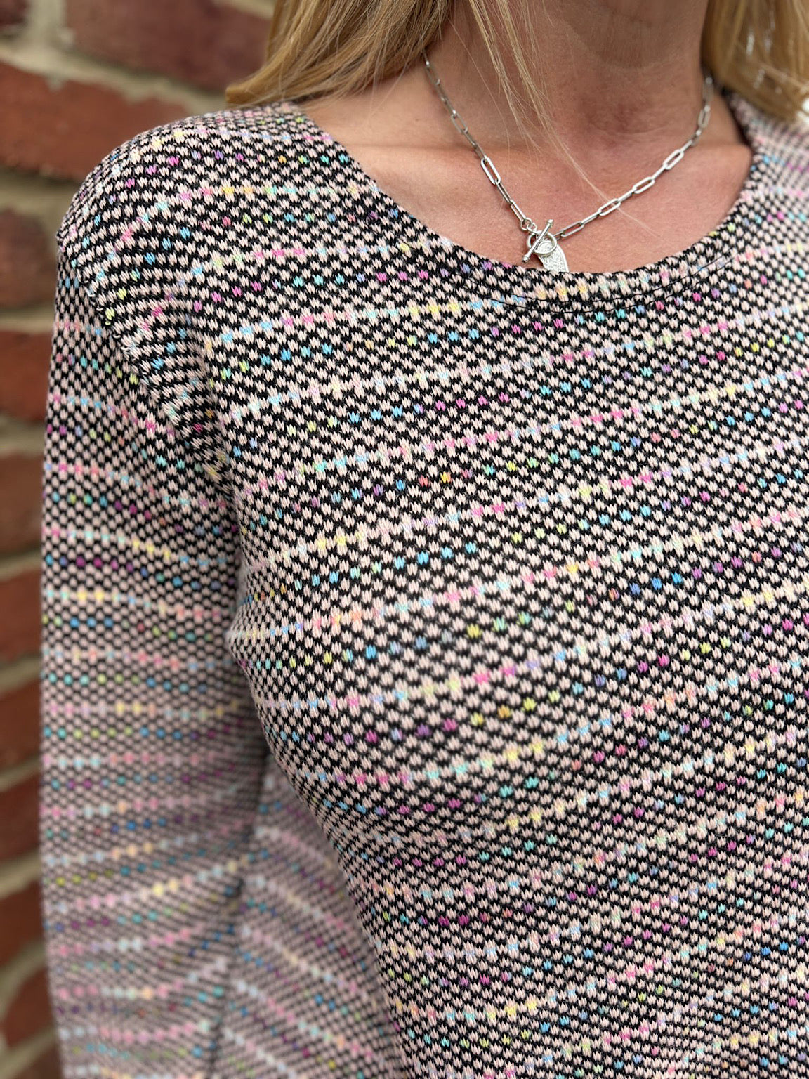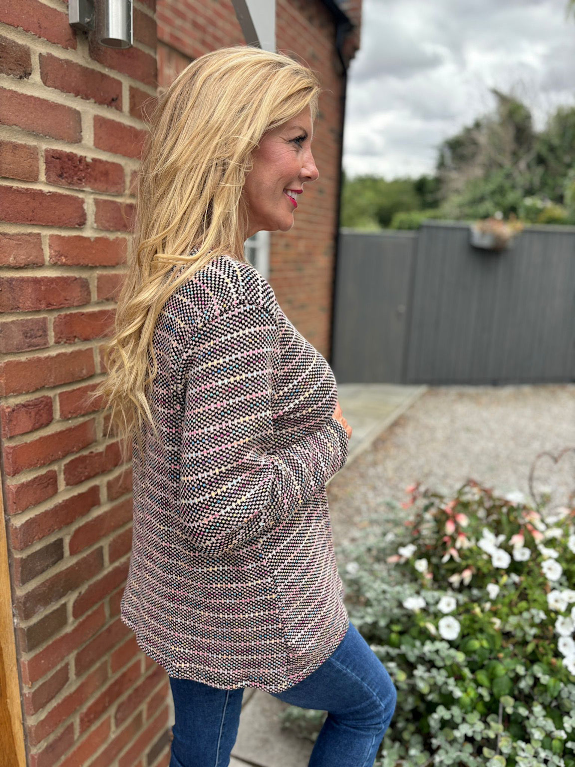This soft, long-sleeve knit top features delicate rainbow stitch detailing, adding a subtle pop of colour to your wardrobe. Crafted for comfort and warmth, it pairs effortlessly with casual or layered looks, making it a versatile staple you'll reach for again and again.