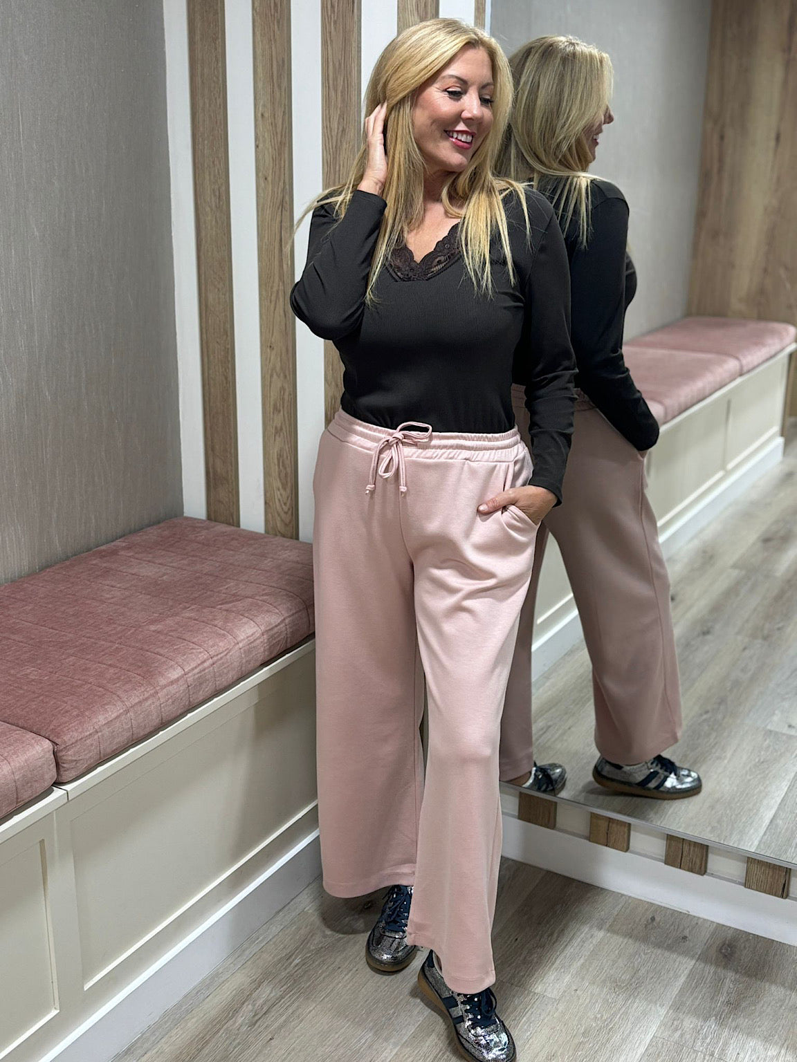 The Wide Leg Jogger Alice features a comfortable drawstring waist for a flattering fit. Crafted from a soft fabric similar to our popular Esme material, these joggers offer all-day comfort. They pair perfectly with the Alice Hooded Jacket, creating a coordinated and cosy outfit ideal for relaxation or casual outings.