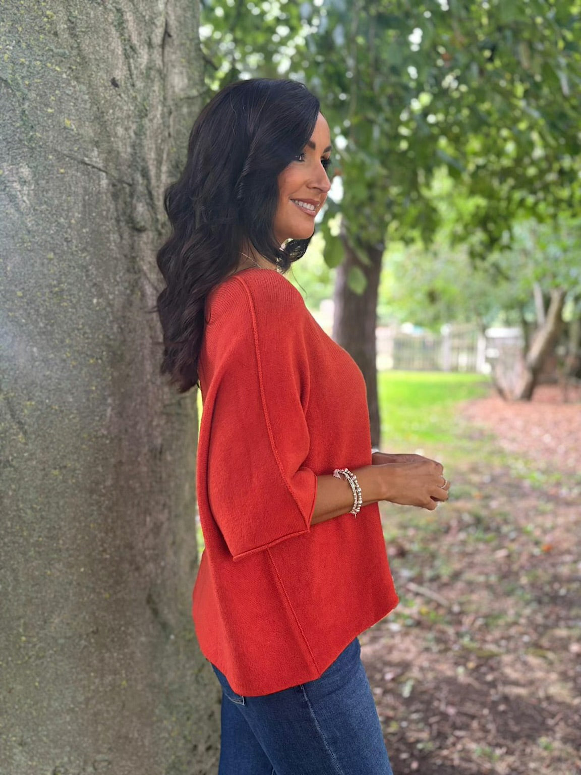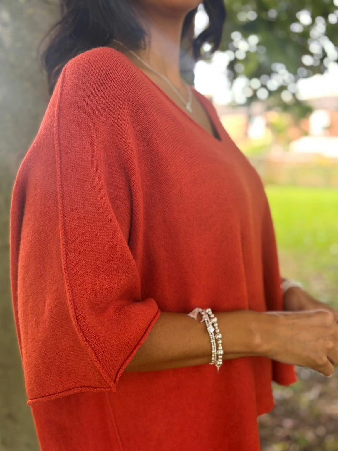 This V-Neck Reverse Seam Knit Diana top blends comfort with subtle style. Its flattering v-neckline adds a touch of elegance, while the reverse seam detailing offers a unique, modern twist. Crafted from soft knit fabric, it ensures gentle wear throughout your day. Perfect for layering or wearing on its own, this top supports your versatile wardrobe needs with ease and grace.