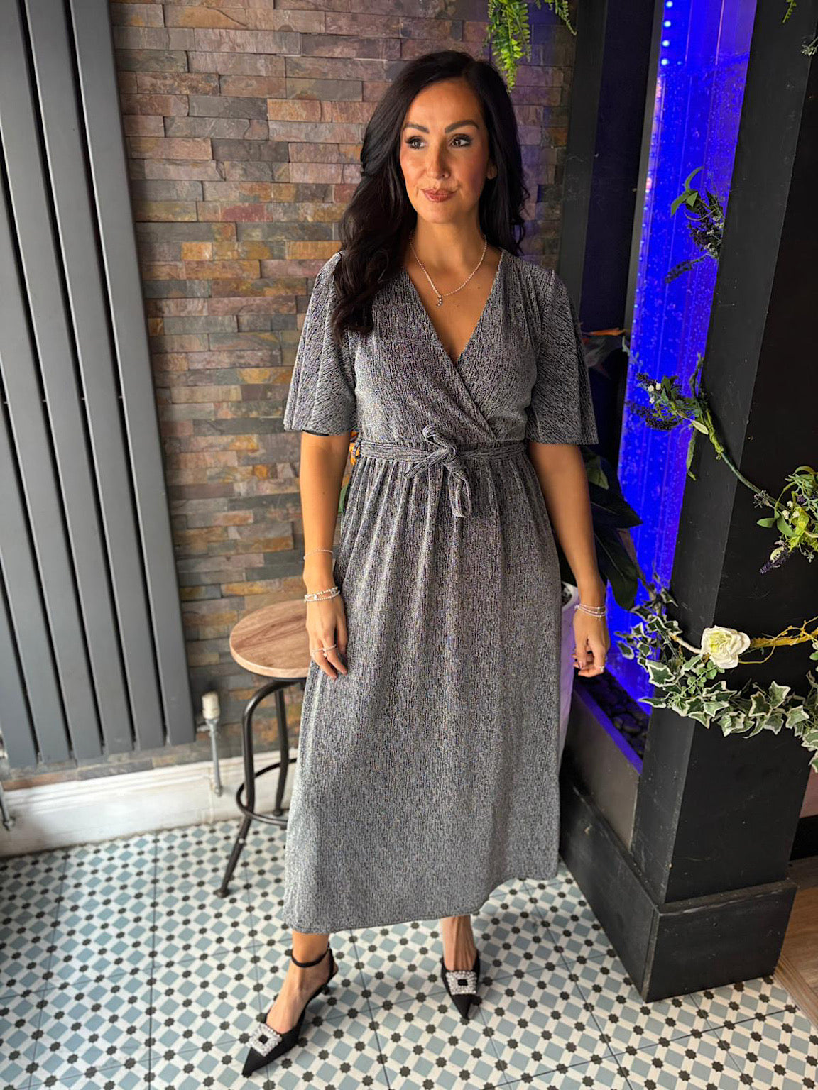 Silver Shimmer Angel Sleeve Dress Maddie