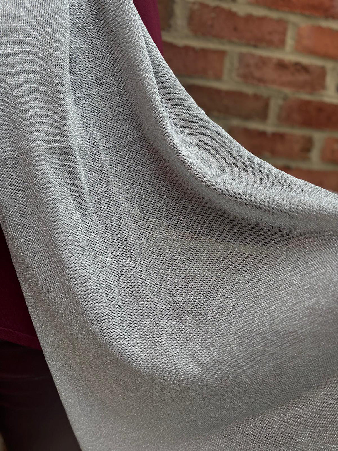 Wrap yourself in elegant warmth with this Gold Shimmer Knit Scarf. Crafted from fine, lightweight knit fabric, it offers comfortable wear without bulk. The subtle lurex threads woven throughout add a touch of sophistication, making it a versatile accessory for both casual and dressier occasions. Perfect for adding a refined sparkle to your outfit while keeping you cosy.