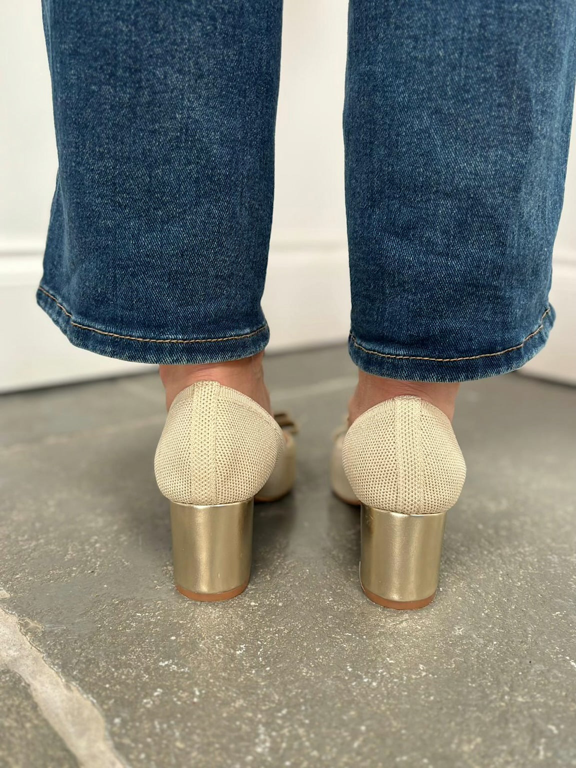 Stone Block Heel Bow Shoes