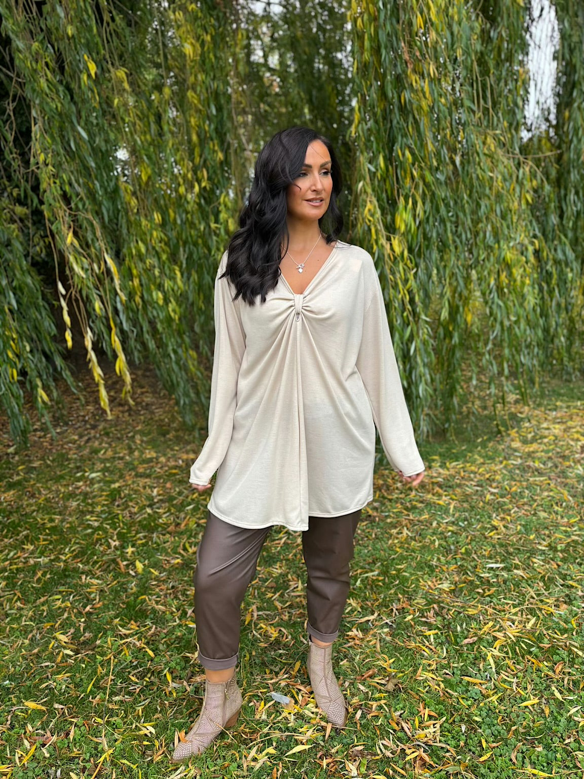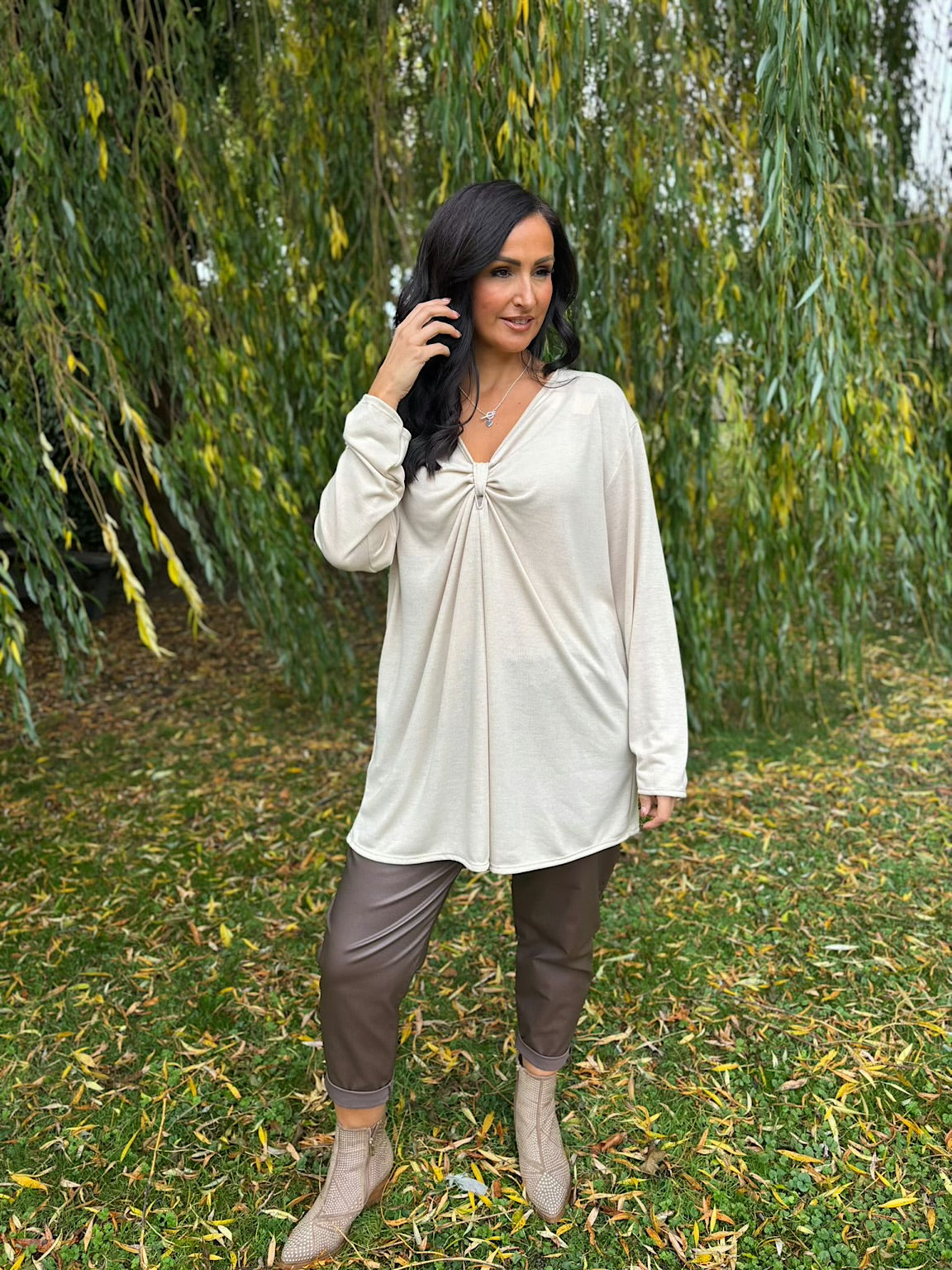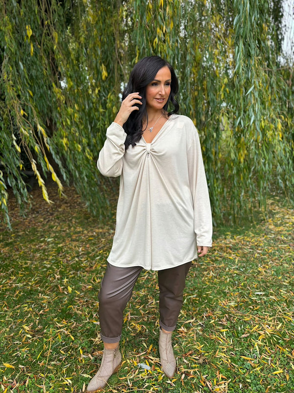 Elevate your everyday wardrobe with the Gathered V Neck Top Elsie, a versatile piece that combines comfort with understated elegance. Featuring long sleeves and a flattering gathered front detail at the neckline, this top creates a gentle, feminine silhouette that works beautifully for both casual days and dressier occasions.