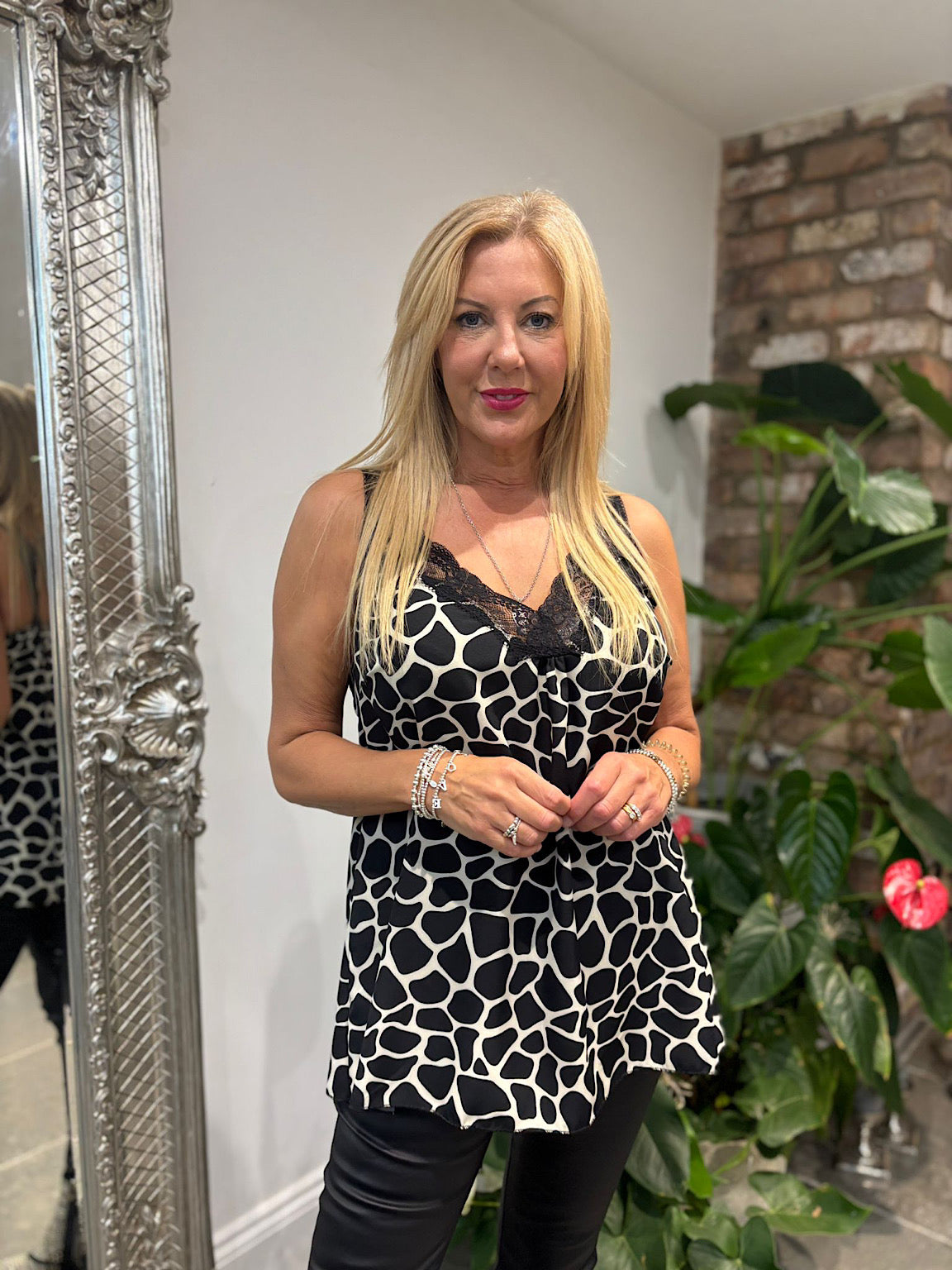 Stone Giraffe Print Lace Trim Vest Megan