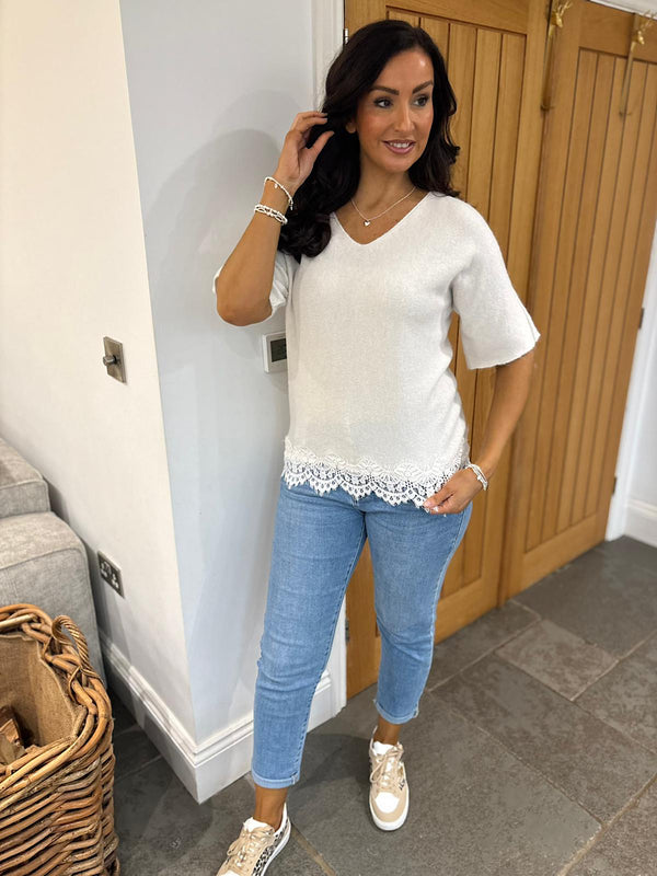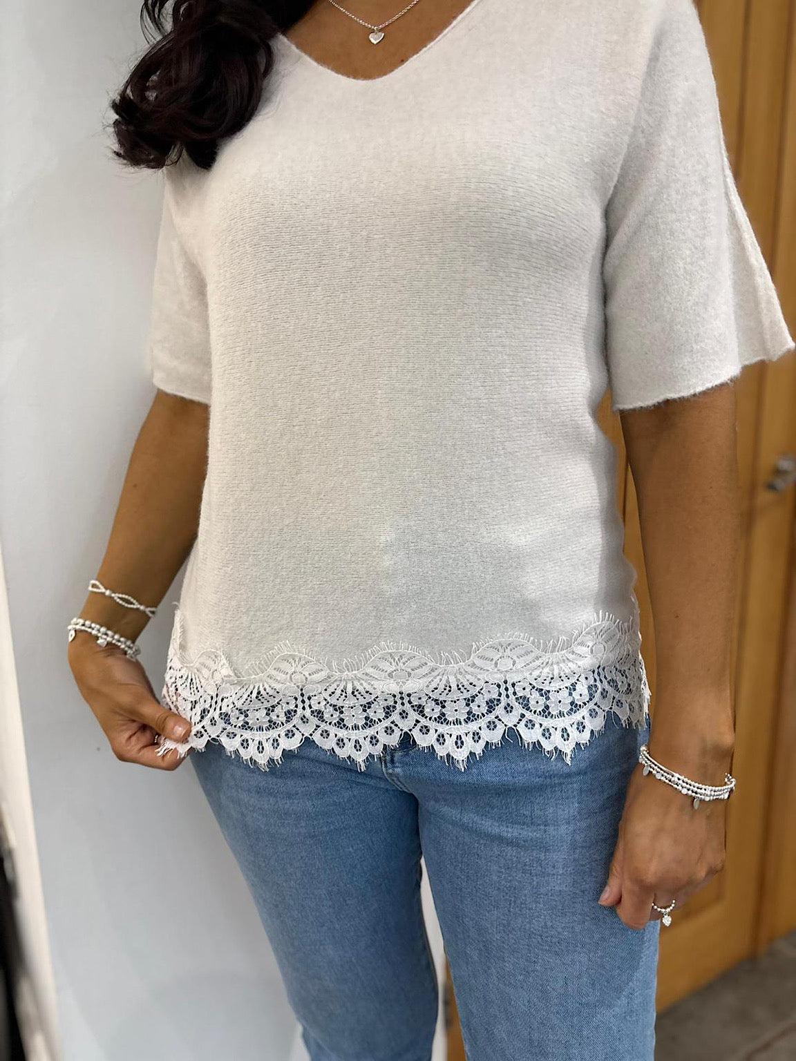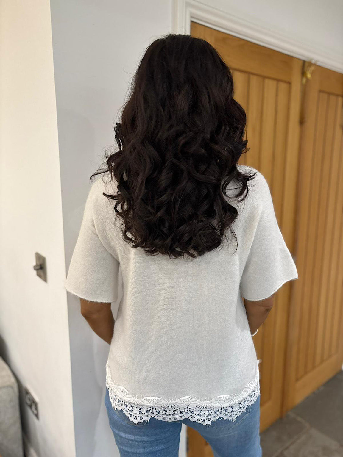Wrap yourself in comfort with the Lace Hem Soft Knit Lara. This cosy V-neck design features delicate lace trim at the hem, adding a touch of elegance to everyday wear. Crafted from soft knit fabric, it's the perfect layering piece for staying warm whilst looking effortlessly put-together. Whether you're relaxing at home or stepping out, this versatile knit offers the comfort and style you deserve.