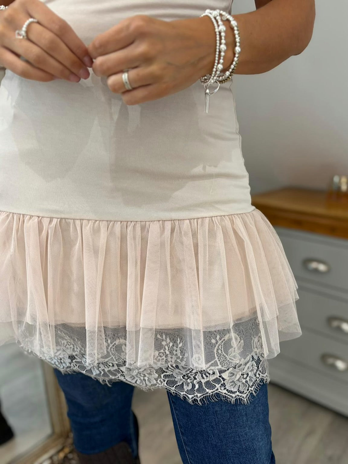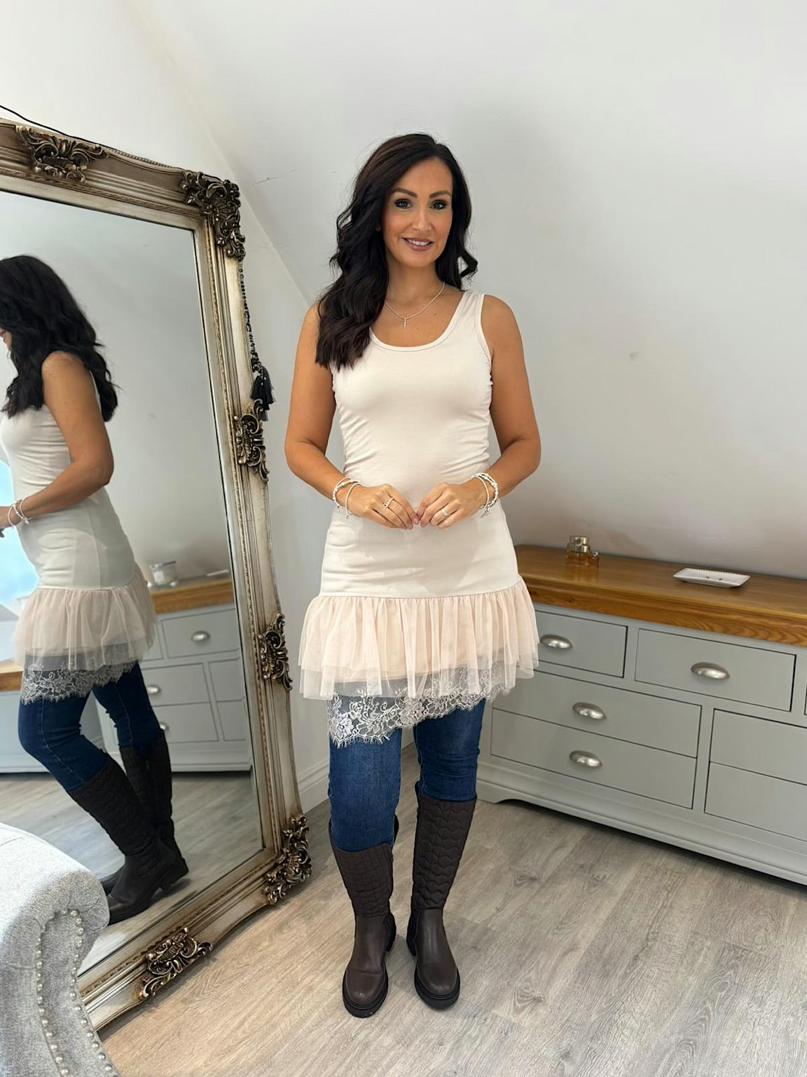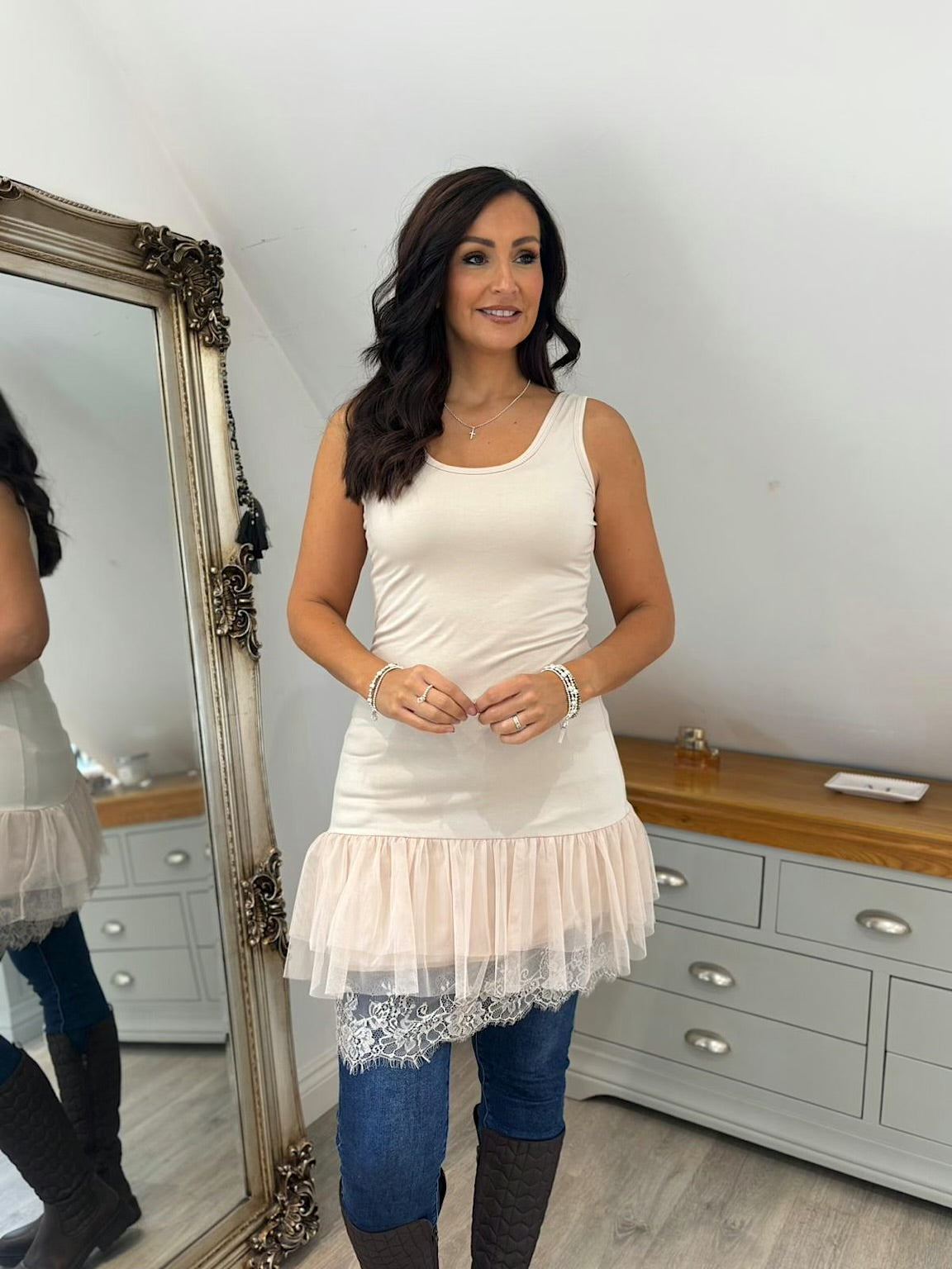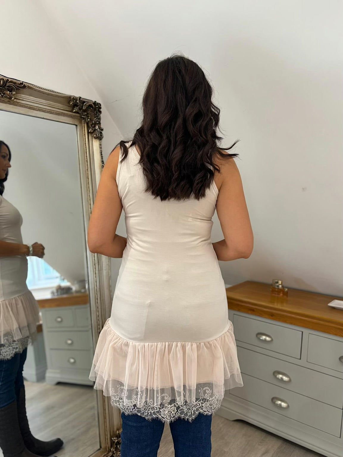 Elevate your wardrobe with the Lace Mesh Hem Slip Rhianna, designed for effortless layering. Its delicate lace mesh hem adds a touch of elegance, while the smooth fabric ensures comfort underneath any outfit. Perfect for enhancing dresses or skirts, this slip creates subtle dimension and refined style.