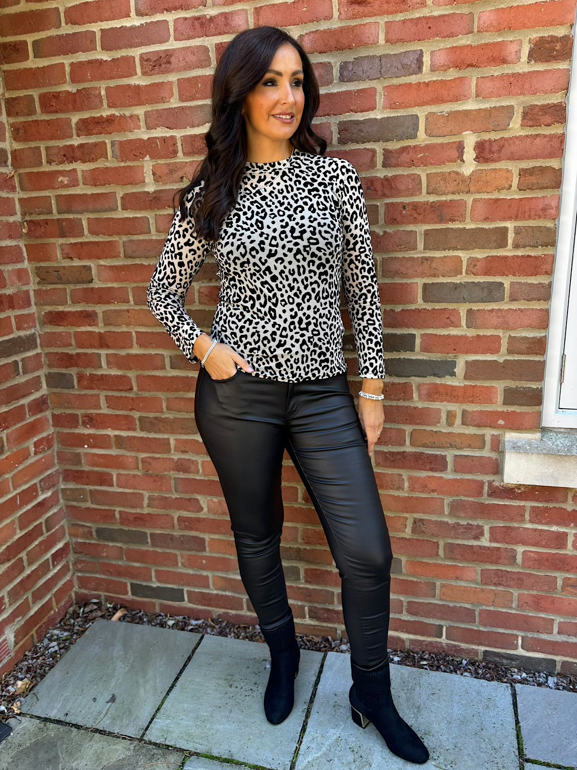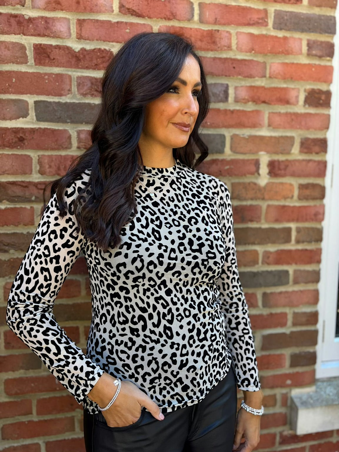 Elevate your wardrobe with the Leopard Mesh Top Helen, featuring a refined leopard pattern woven into a breathable mesh fabric. The subtle stretch ensures a comfortable, flattering fit that moves effortlessly with you. Perfect for adding a touch of sophistication and bold style to any outfit.