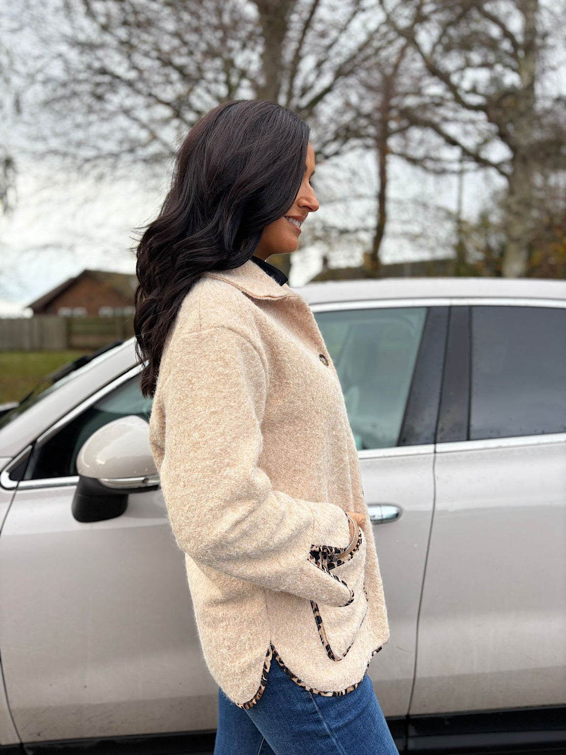 Wrap yourself in warmth and style with this Leopard Trim Coat Maisy. Crafted from a cosy, brushed wool effect fabric, this piece delivers comfort without compromise. The distinctive leopard trim detailing adds a touch of personality to your everyday outfits, while the practical button closure ensures a secure fit. Perfect for layering through the colder months, this versatile coat transitions effortlessly from casual to polished looks.