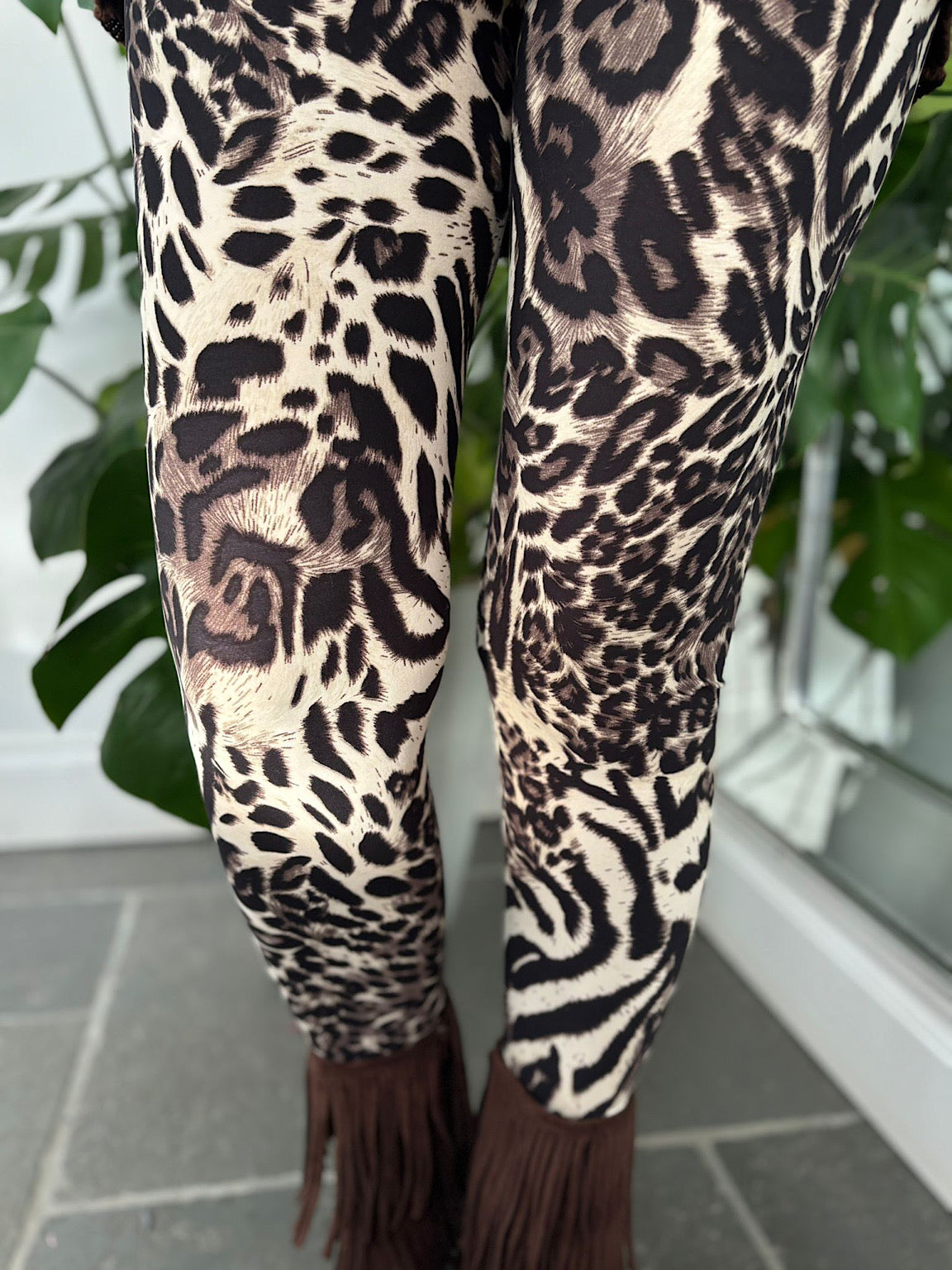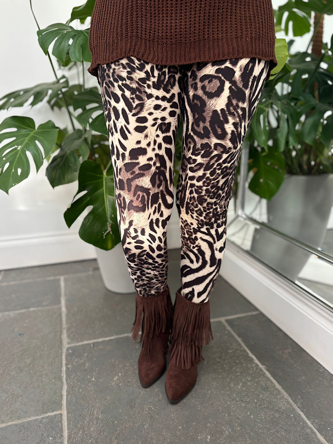 Stone Mixed Animal Leggings combine striking tiger and leopard prints for a bold, eye-catching look that celebrates your wild side. Crafted from soft, comfortable fabric, these leggings move with you throughout your day, whether you're heading to the gym, running errands, or relaxing at home. The versatile neutral stone tone keeps the prints wearable and easy to style with your favourite tops. Perfect for anyone who loves statement pieces that don't compromise on comfort.