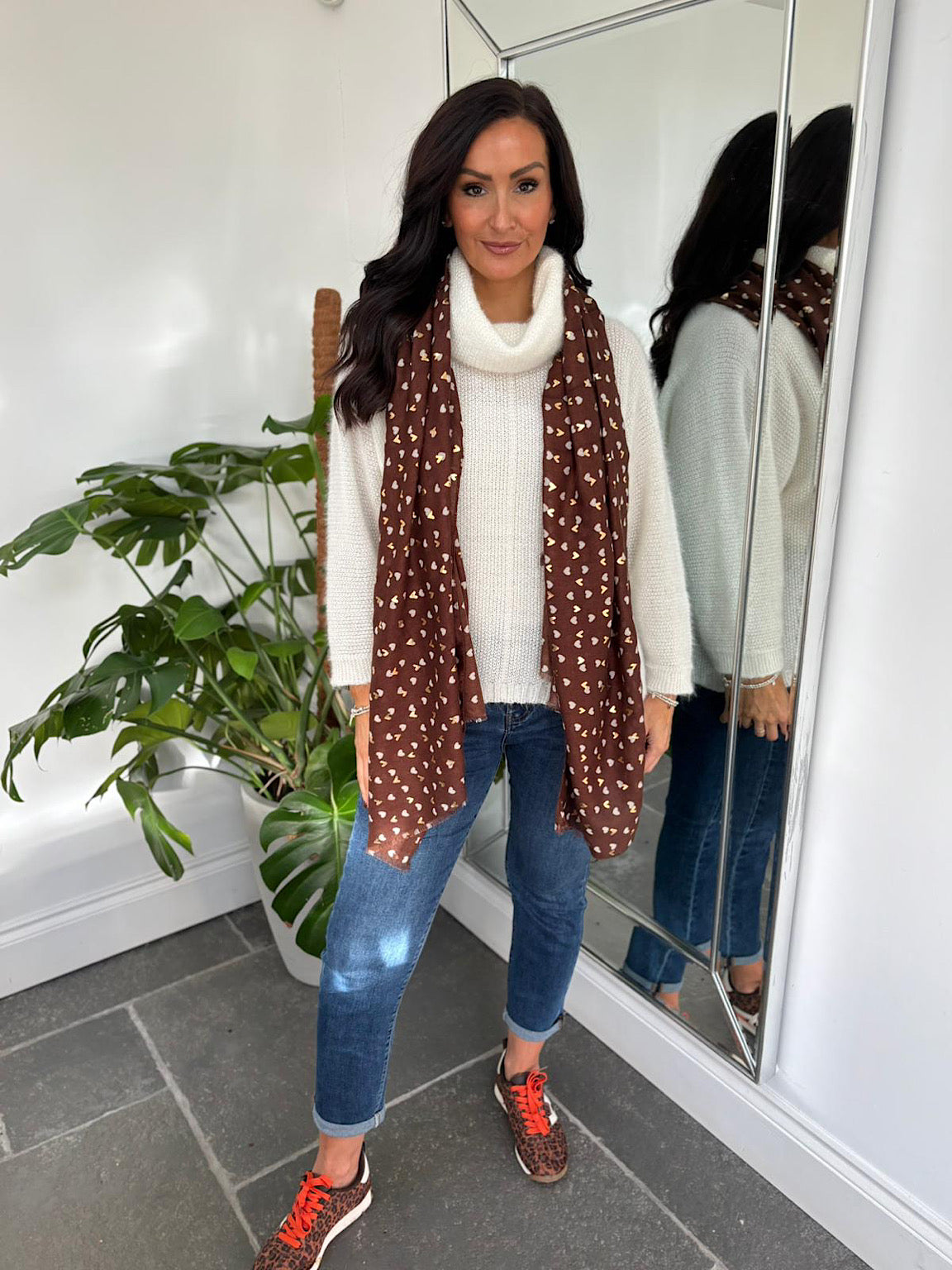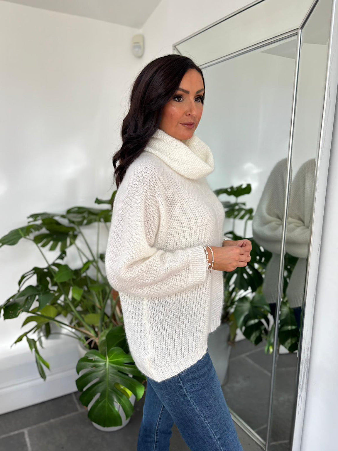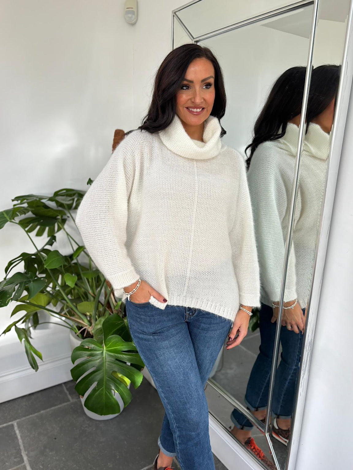 Stay warm and stylish with our Roll Neck Shimmer Knit Susan. Made from a cosy fabric, this sweater features a subtle shimmer for a touch of elegance. The roll neck adds extra warmth and comfort. Perfect for staying chic during the colder months.