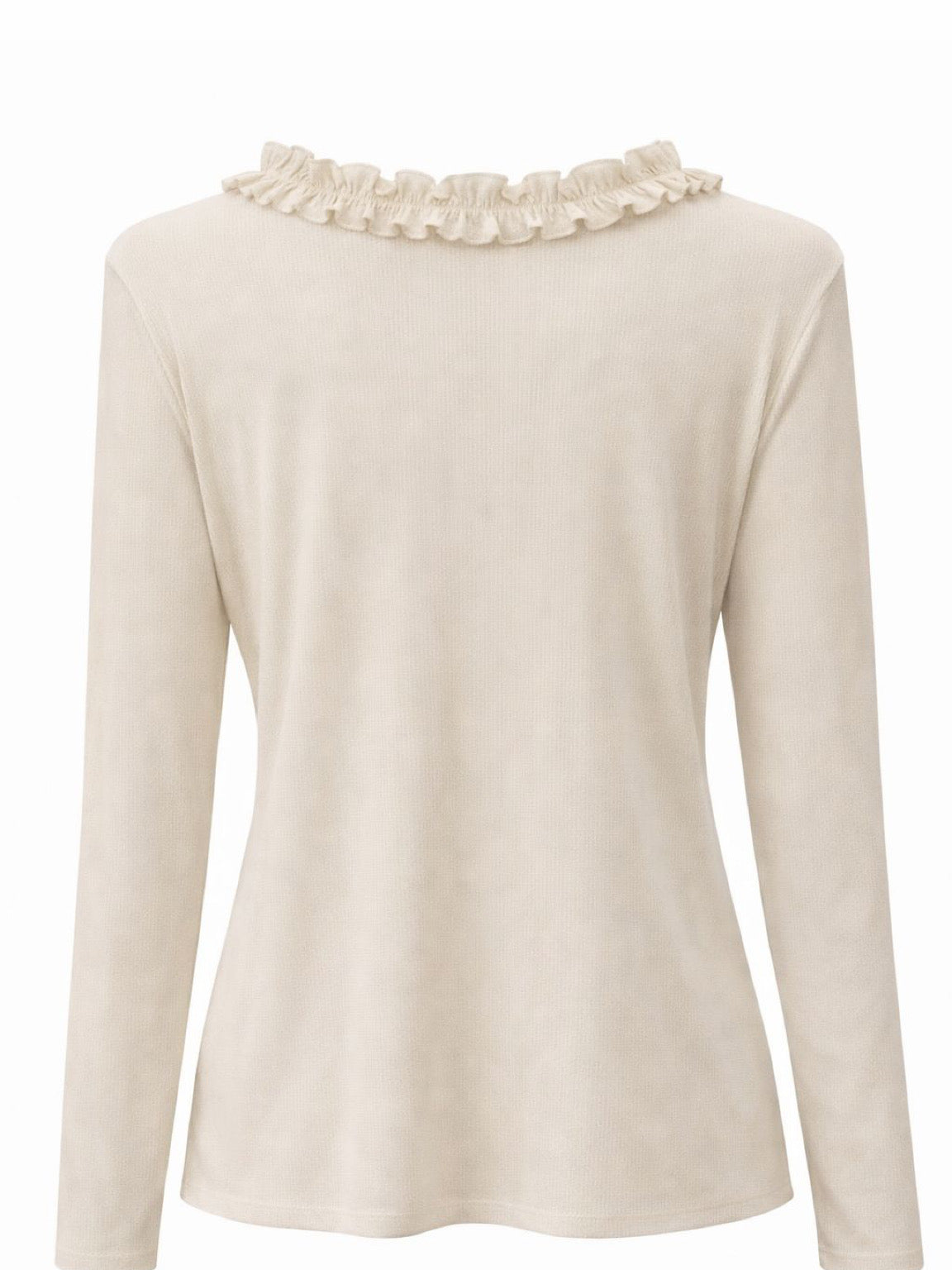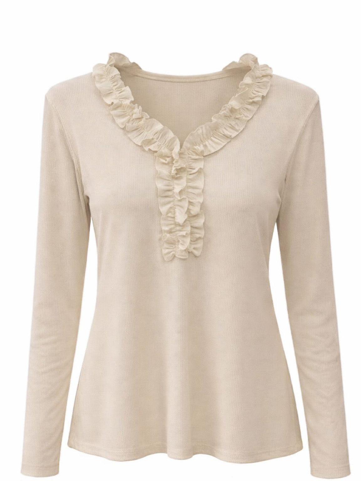 Elevate your everyday wardrobe with this charming Ruffle Detail Top Jeanelle. Crafted from fine ribbed material, this piece offers a delicate texture that feels as good as it looks. The stunning ruffle frill neckline adds a touch of feminine elegance, while the fabric's natural elasticity ensures a comfortable, flattering fit throughout the day. Perfect for layering or wearing solo, this versatile top brings effortless style to any occasion.