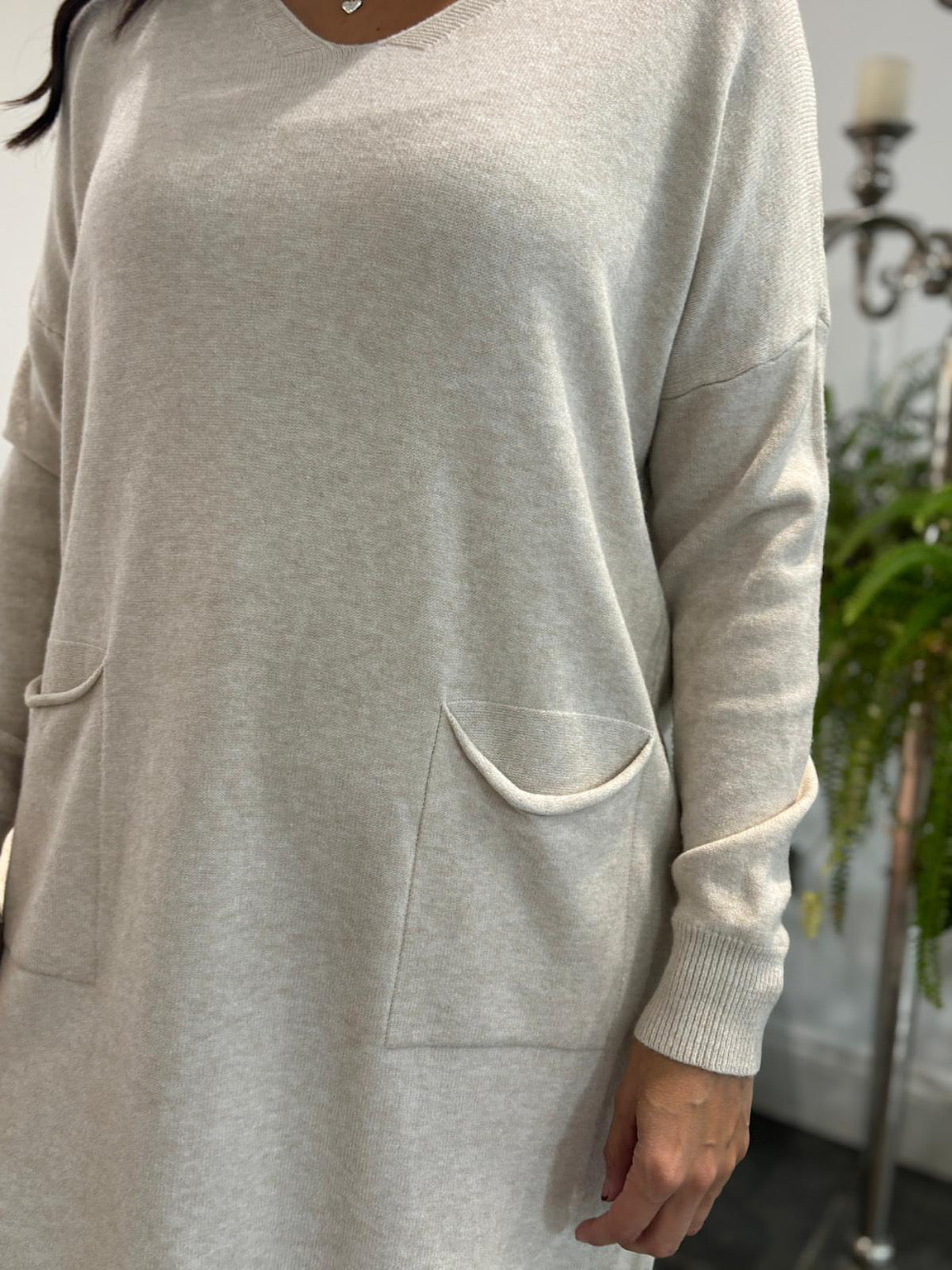 Enjoy cosy warmth and effortless style with this Soft Knit Pocket Jumper Dress Fern. Crafted from high-quality soft knit, it offers comfort that lasts all day. Two front pockets add practical charm, perfect for keeping essentials close or warming your hands. A versatile piece designed to keep you snug while looking effortlessly chic.